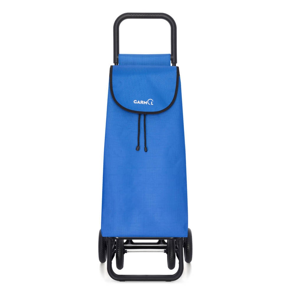 El carro de la compra es ligero y resistente, lleva una bolsa azul de 55 litros realizada en tejido de poliéster con solapa ribeteada y cierre ajustable con cordón, la bolsa incorpora un bolsillo trasero y un bolsillo interior. Su manillar en color negro ofrece gran estabilidad y es muy cómodo de llevar.