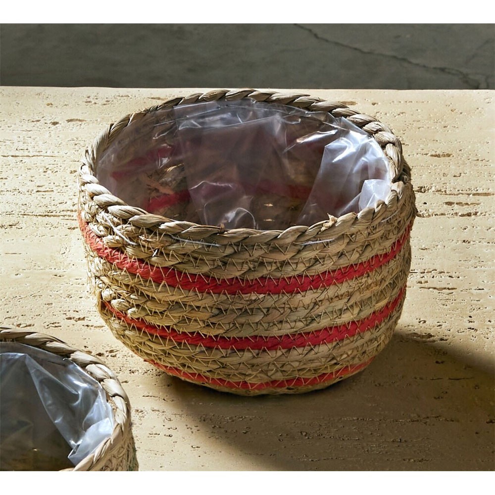 MACETERO FIBRA LINEAS ROJAS 12CM