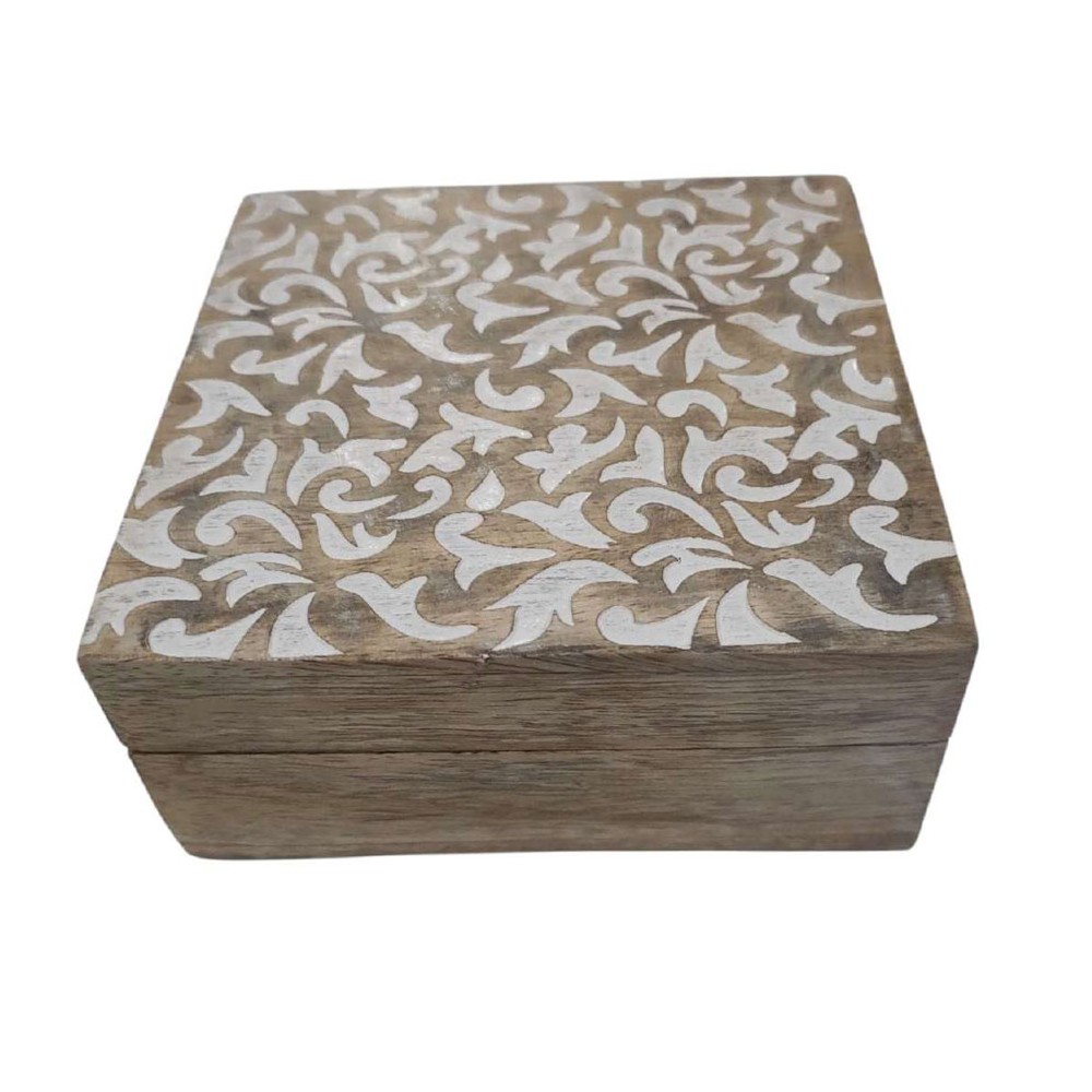 CAJA MADERA TALLADA ARABESCO 14*14* 6.5CM