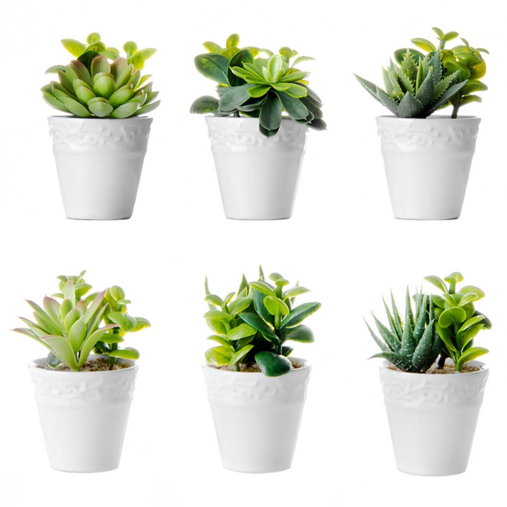 Cactus artificial de plástico en maceta de porcelana blanca, ideal para crear pequeños conjuntos con varias macetas para decorar mesas, recibidores, estanterías, etc. Los cactus son la última tendencia en decoración para el hogar.