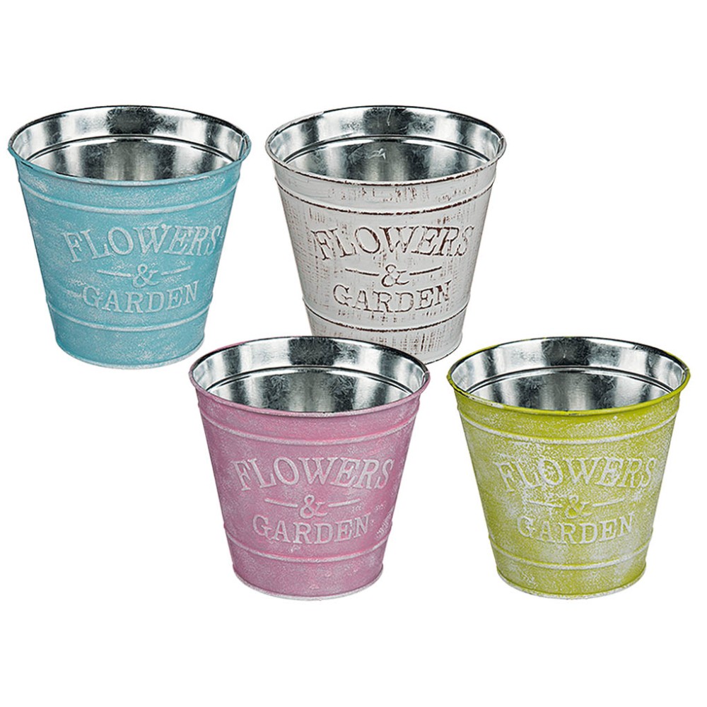 Porta macetas de metal para colocar plantas y decorar tu hogar, disponible en 4 colores: azul, amarillo, rosa o blanco.