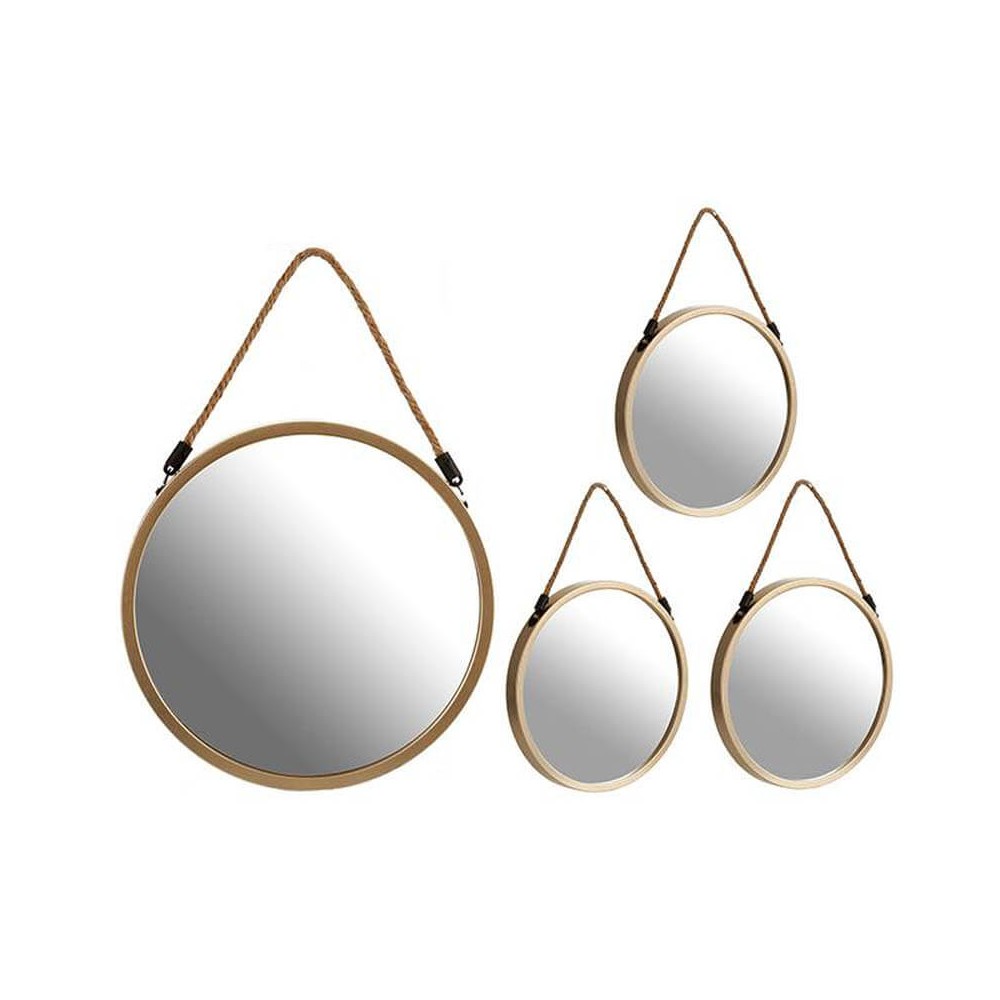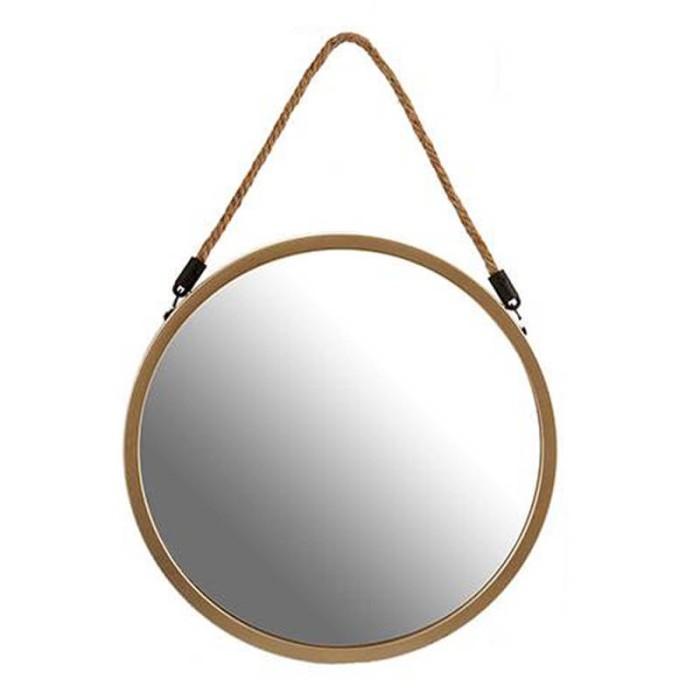 Espejo decorativo de color oro con cuerda para colgarlo de la pared.
