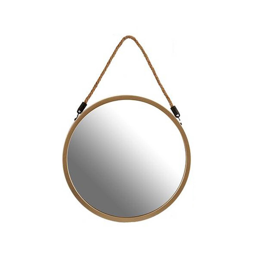Espejo de pared redondo con marco de plástico dorado de alta calidad imitando metal y colgador de cuerda natural. Su diseño industrial pero elegante hace que el espejo pueda ir en cualquier estancia del hogar completando la decoración, te encantara.