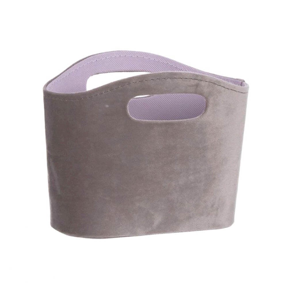 Portamandos fabricado en tela de poliéster de color topo con acabado aterciopelado, diseño práctico y elegante para tener los mandos de la casa organizados y a mano en todo momento. Gracias a su asa podrás transportarlo cómodamente de un lado a otro.