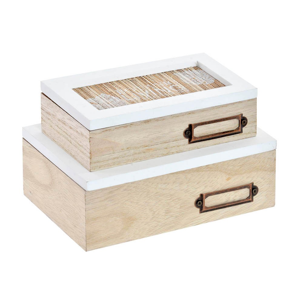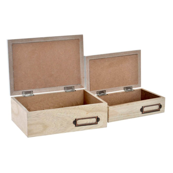Caja decorada rectangular realizada en madera MDF de color natural con la tapa ribeteada en blanco. Esta caja de ordenación es perfecta para guardar relojes, bisutería, cartas y pequeños objetos. También se puede utilizar como elemento de decoración para el salón o dormitorio.