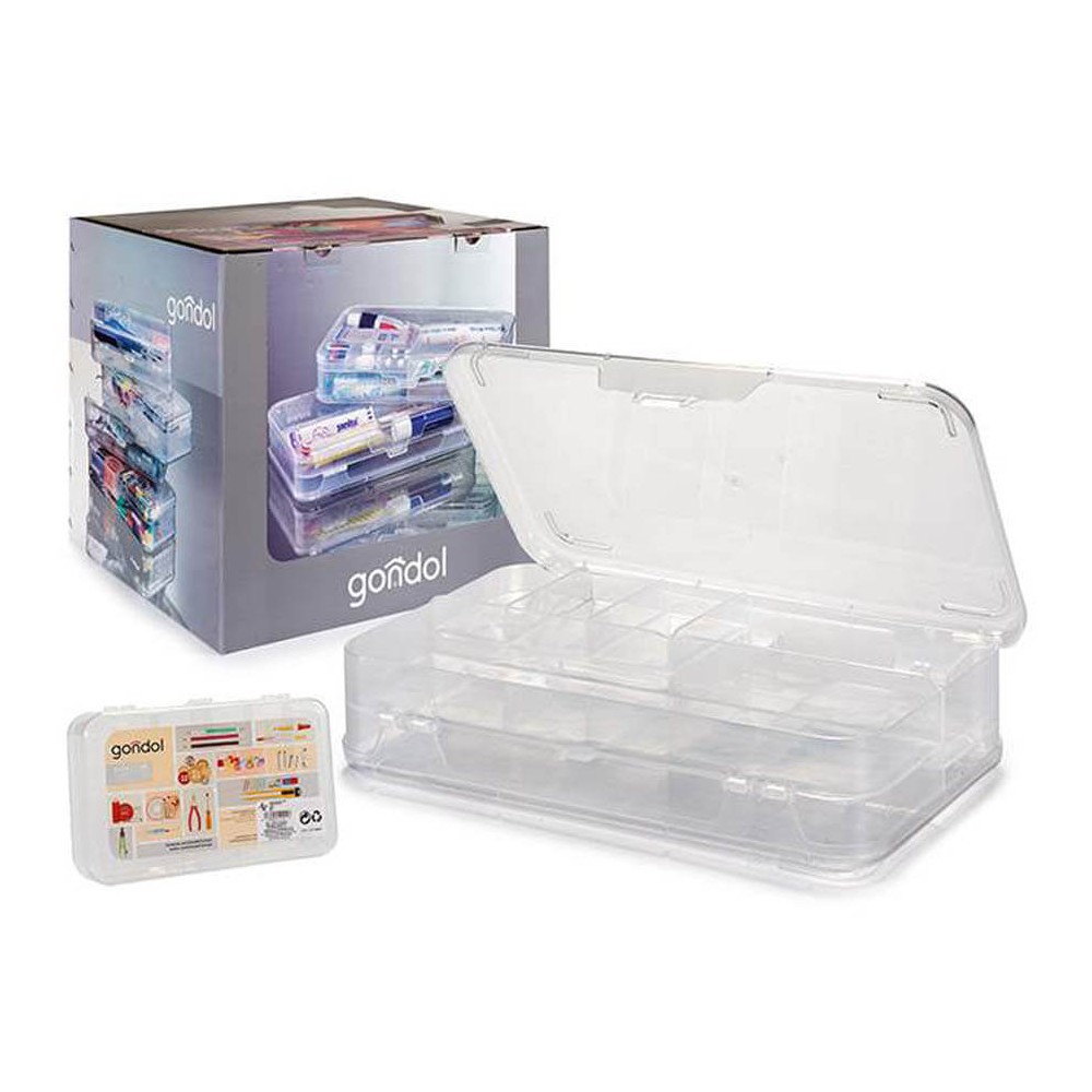 caja organizadora realizada en plástico rígido de color transparente, muy práctica para guardar y organizar objetos de pequeño tamaño.