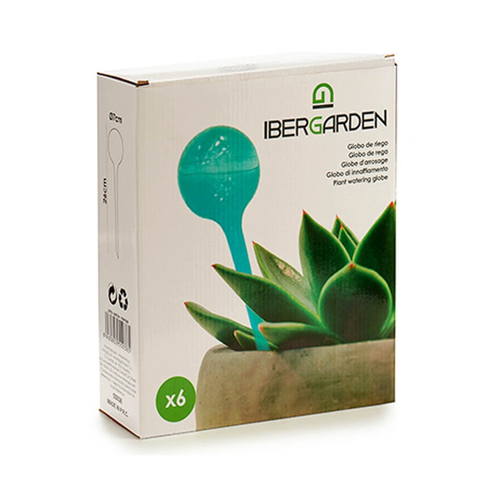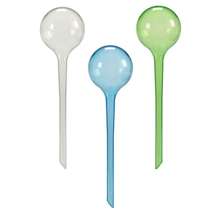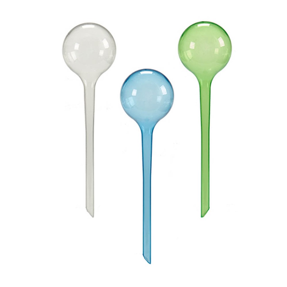 Los globos de riego mantienen las plantas hidratadas de una forma sencilla, solo hay que llenar el globo de agua e introducirlo en la tierra presionando con fuerza. Proporciona agua por goteo.
