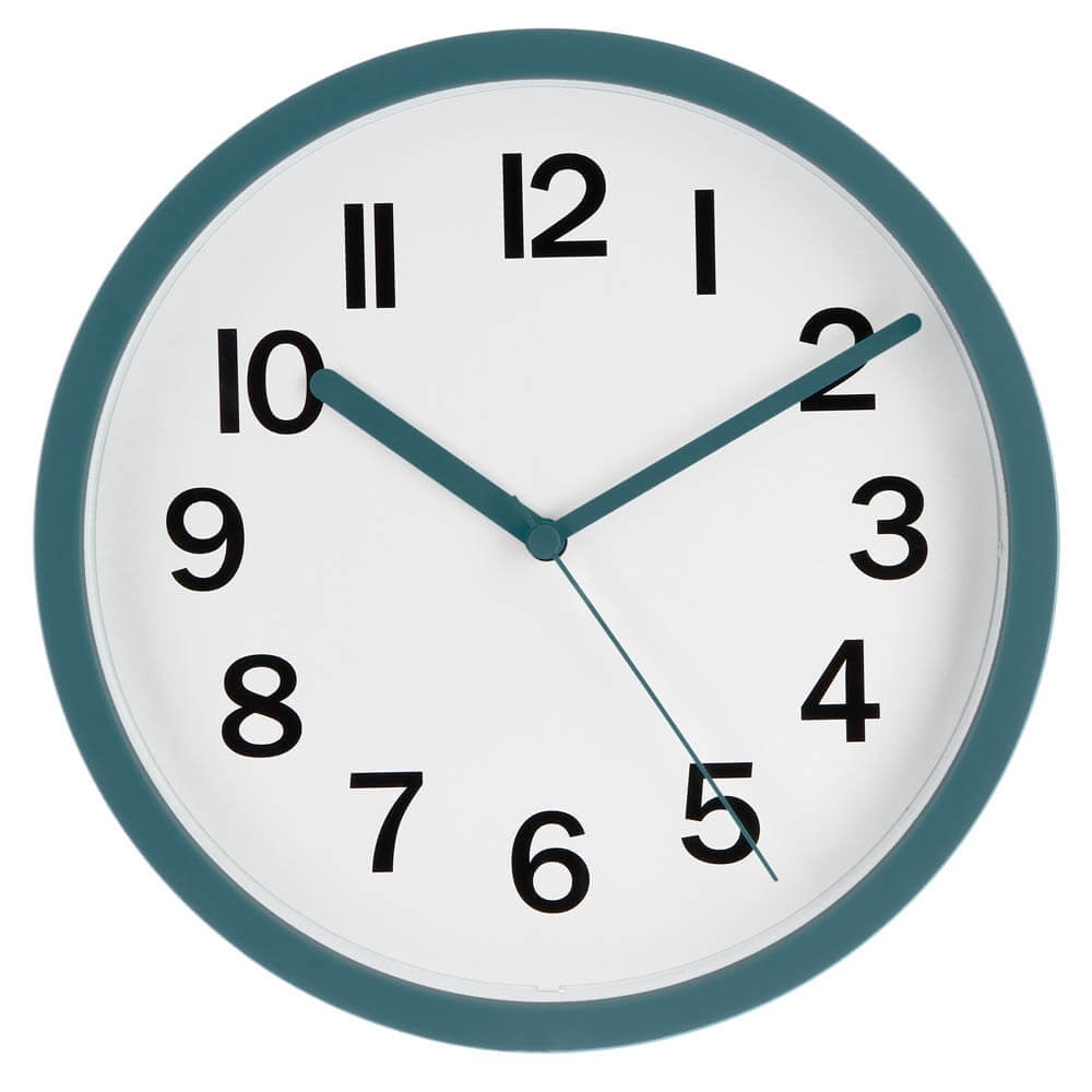 Reloj de pared 22cm con esfera blanca y marco de color. 4 colores.
