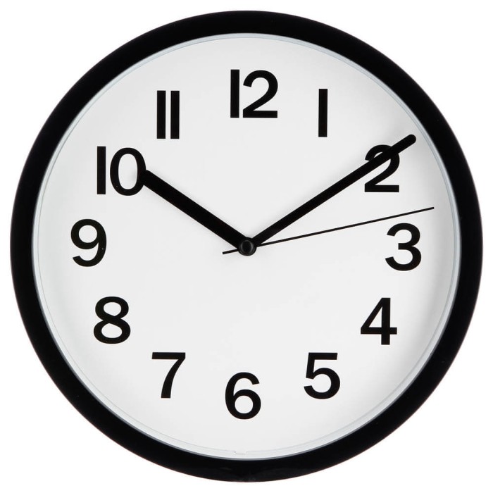 El reloj de pared original lleva la caja realizada en plástico con lente de ABS plana y manecillas de aluminio, su diseño con esfera blanca y grandes números en color negro facilita la lectura incluso desde largas distancias.