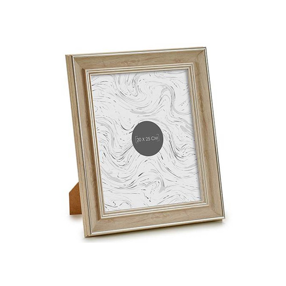 Marco de fotos 20X25 cm en color natural con líneas plateadas.