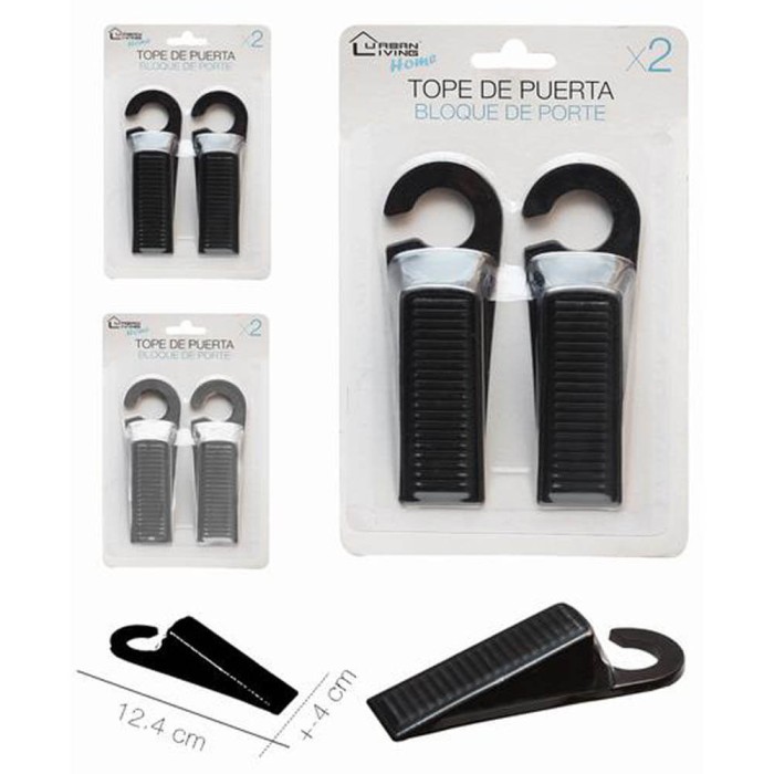 Tope para puerta funcional fabricado en goma, disponible en color gris o negro. Este sujeta puertas es perfecto para evitar incomodos portazos, tan solo tendrás que colocarlo debajo de la puerta para bloquearla y que no se cierre de golpe.