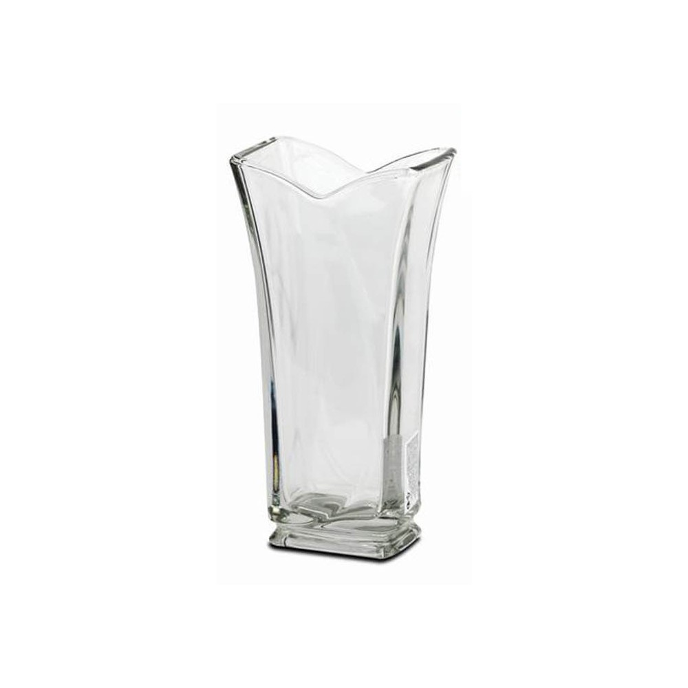 Jarrón decorativo de estilo clásico con formas renovadas realizado en cristal. El jarrón de vidrio transparente con base rectangular y terminación en abertura es ideal como jarrón para flores, su diseño aportara luminosidad al lugar donde lo sitúes.