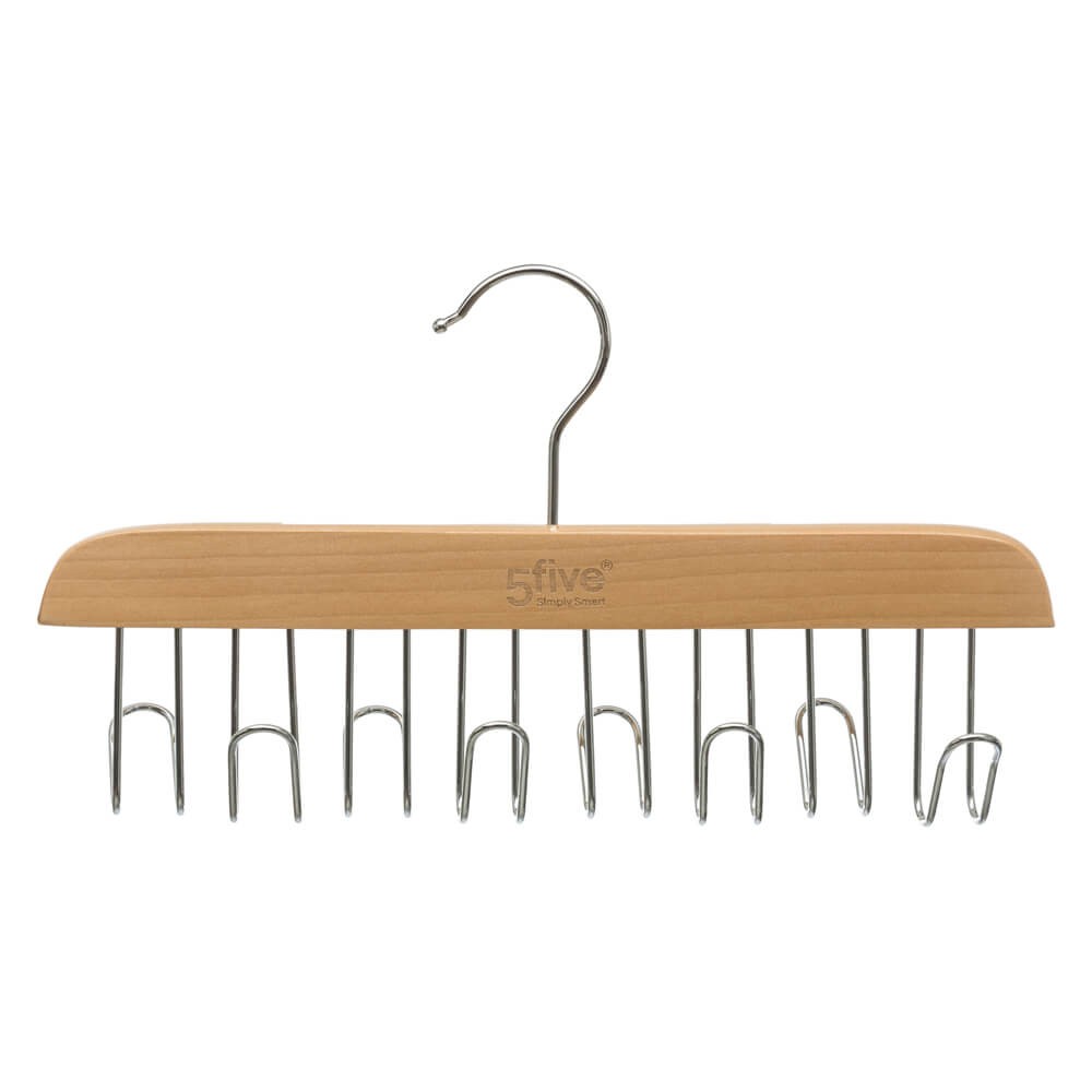 Percha para cinturones realizada en madera resistente con 8 colgadores metálicos. Esta percha múltiple es super práctica para tener los cinturones concentrados y ordenados en el armario.