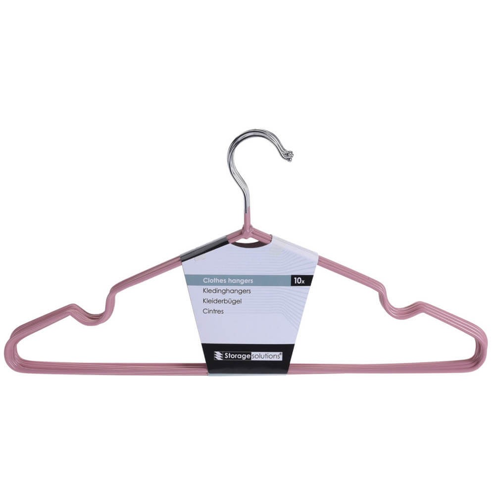 Conjunto de 10 perchas armario realizadas en metal con recubrimiento polivinilico en color pastel, rosa, verde, azul o blanco.