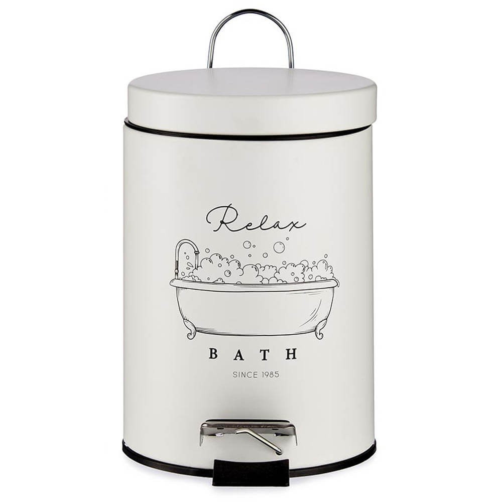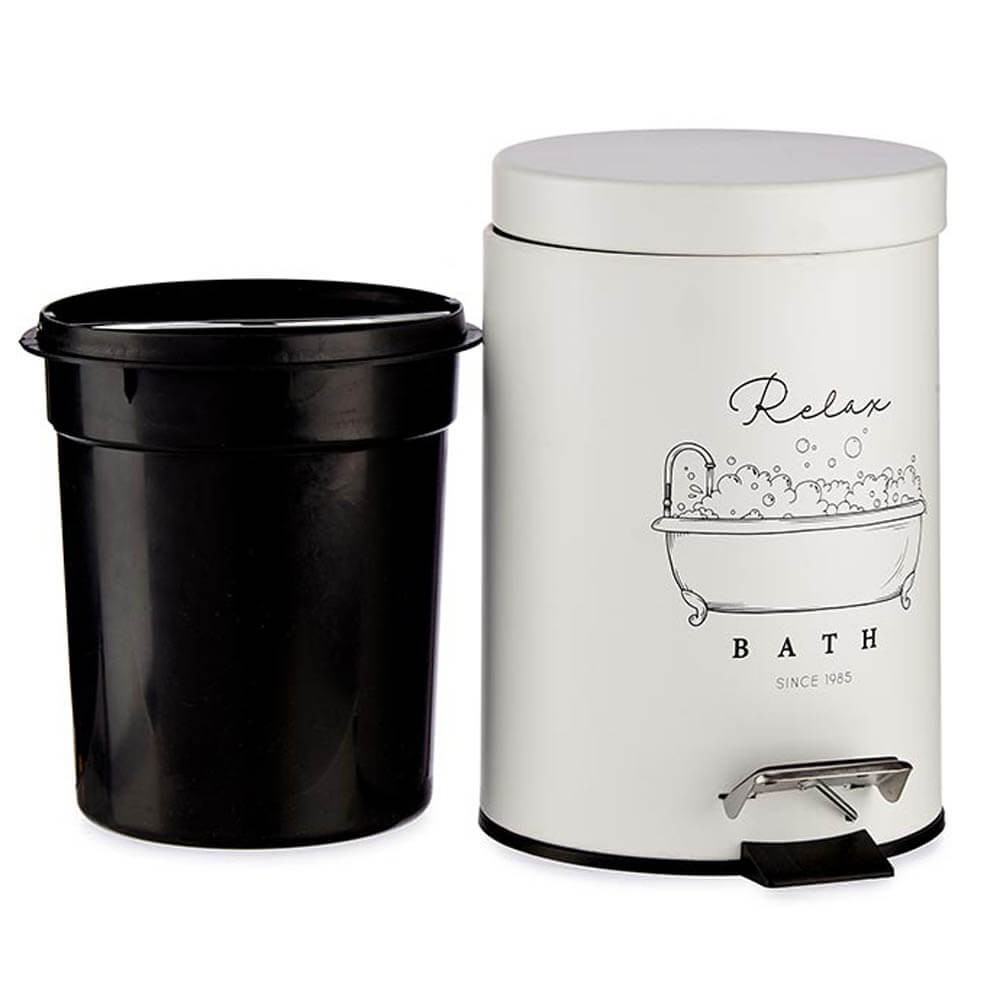 Papelera de baño diseño relax en color blanco con pedal y cubo extraíble, ideal para desechar papeles y envases vacíos.