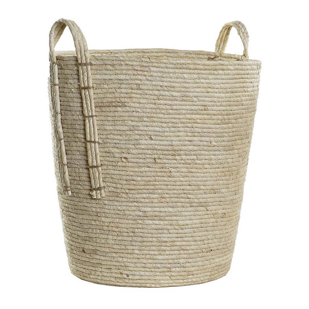 Cesto con asas realizado en fibra de maíz acabado natural.