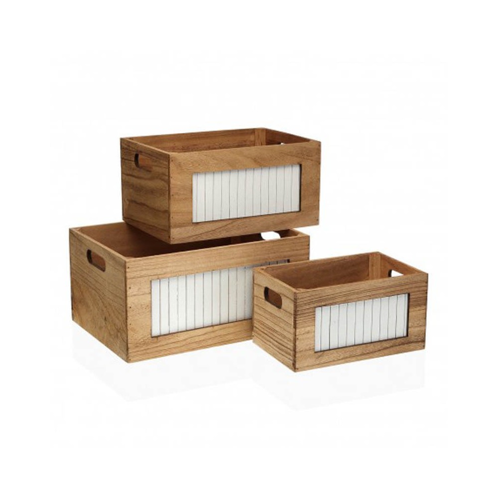 Caja de madera con asas diseño marrón con los laterales blancos. No es un set.