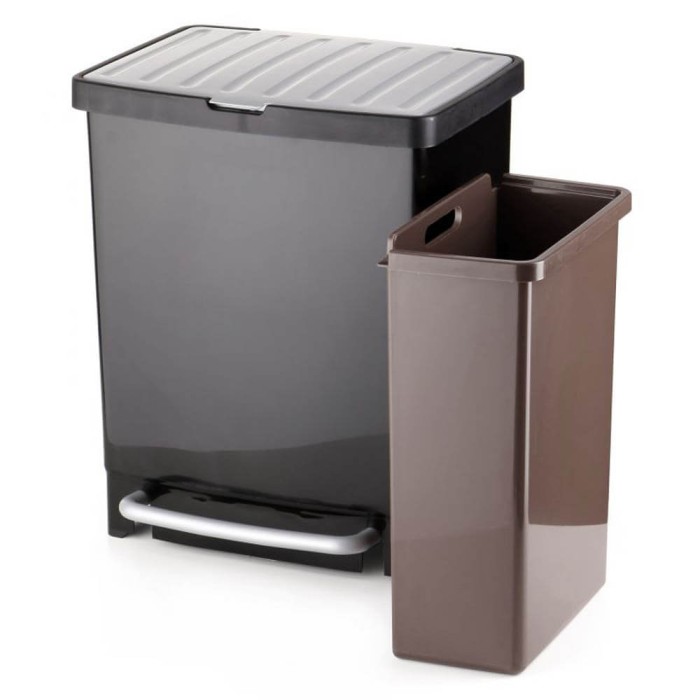 Cubo de basura con doble compartimento 17 litros + 8 litros, ideal para reciclar plásticos, separar organico, etc.