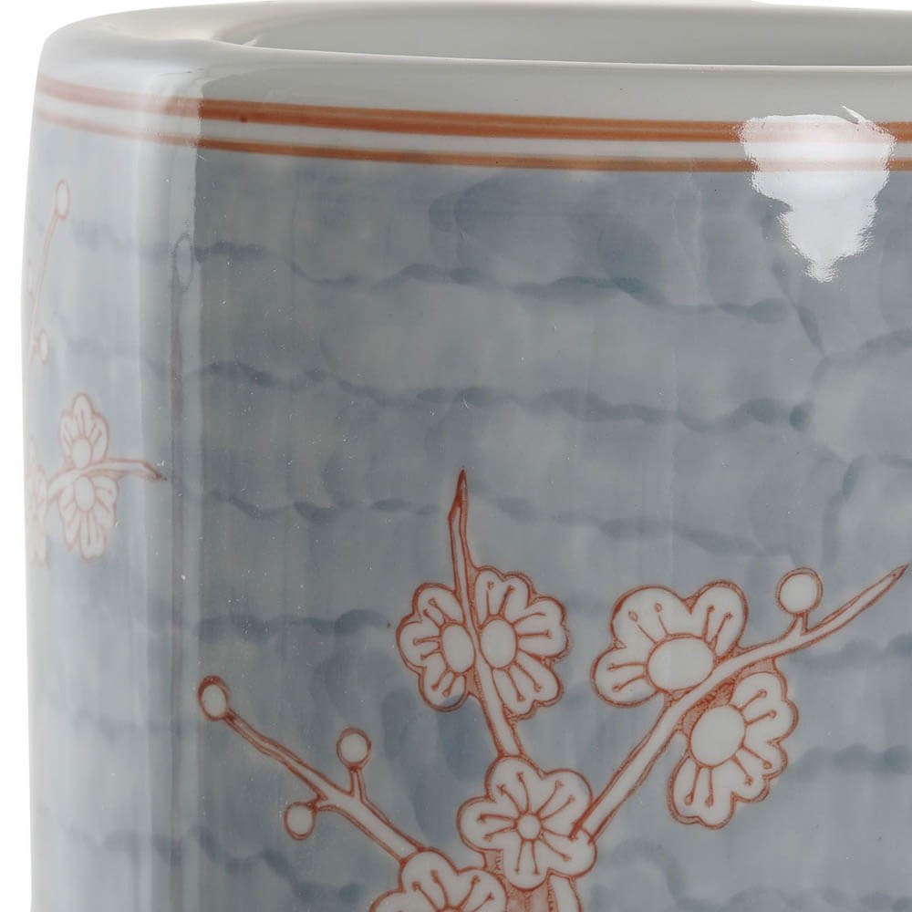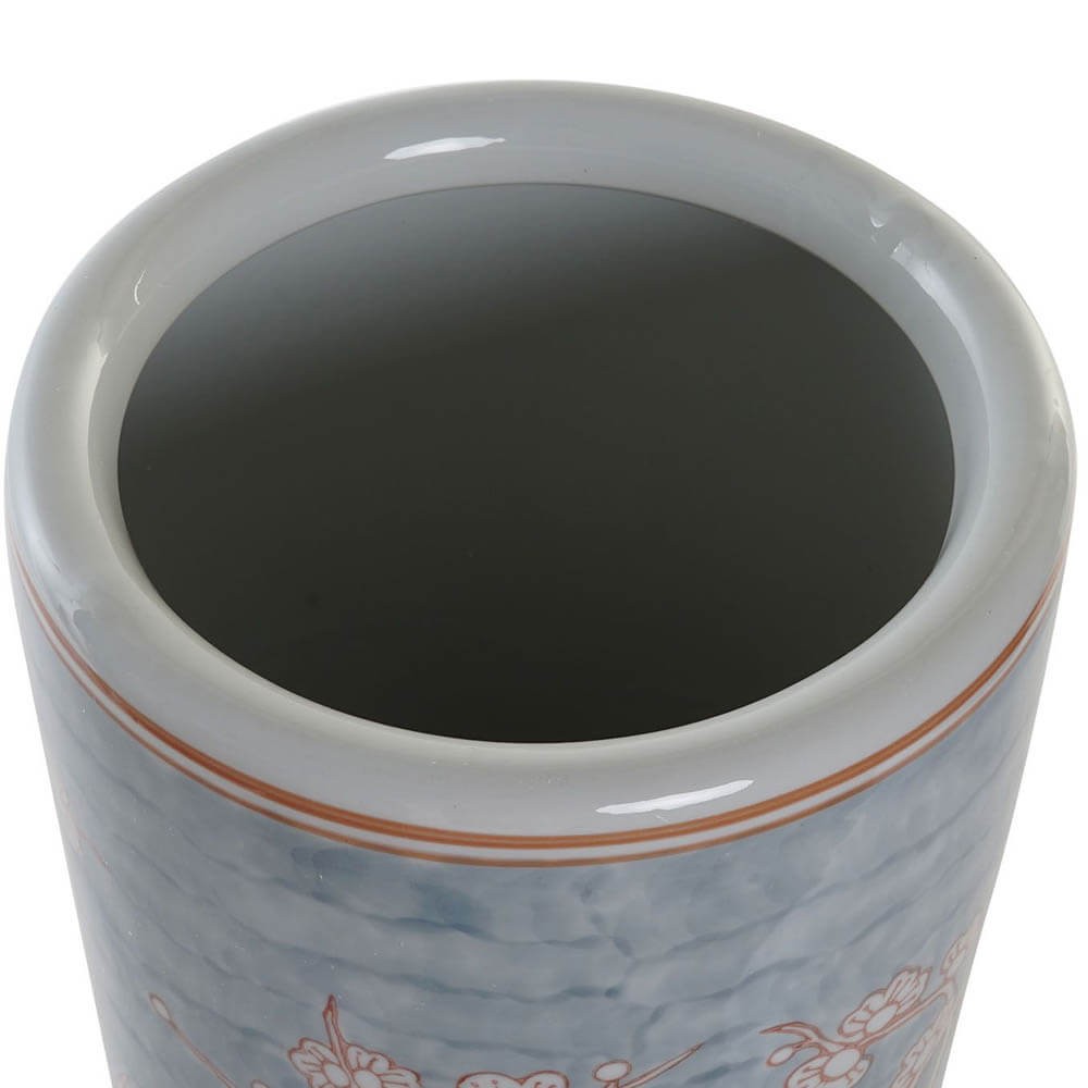 Paragüero de porcelana con un sofisticado diseño de estilo oriental en color azul con flores de almendro anaranjadas.