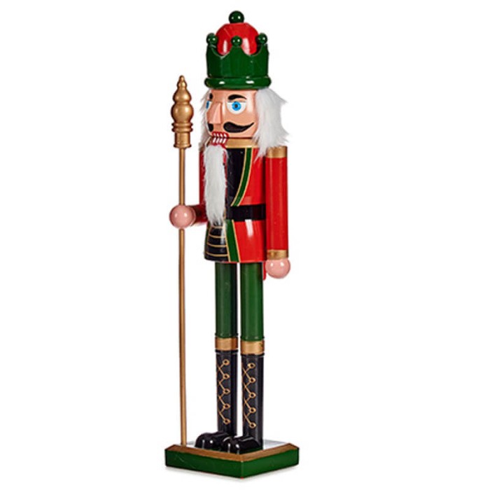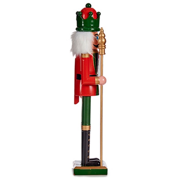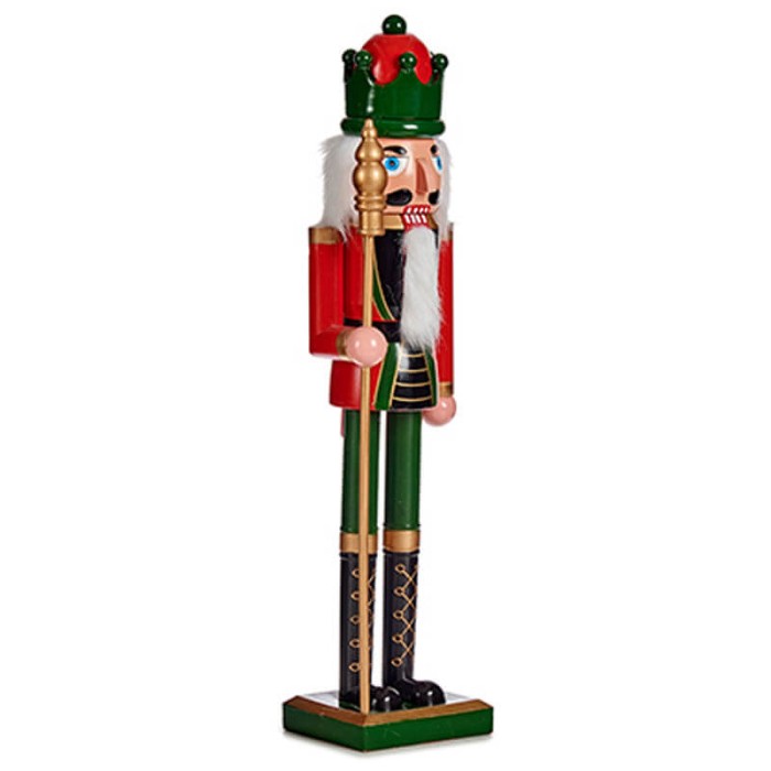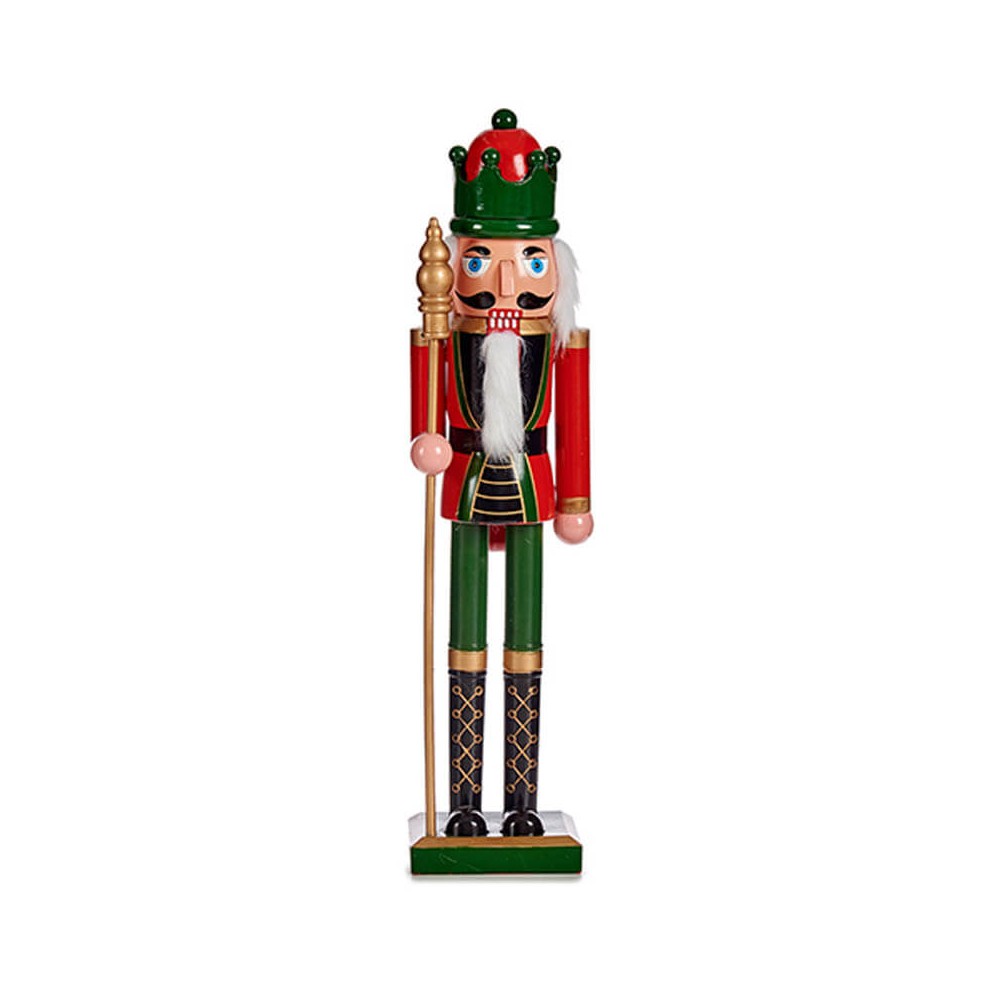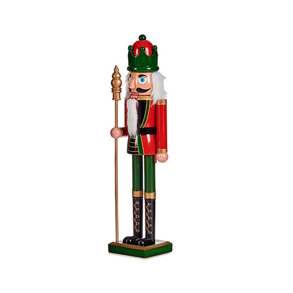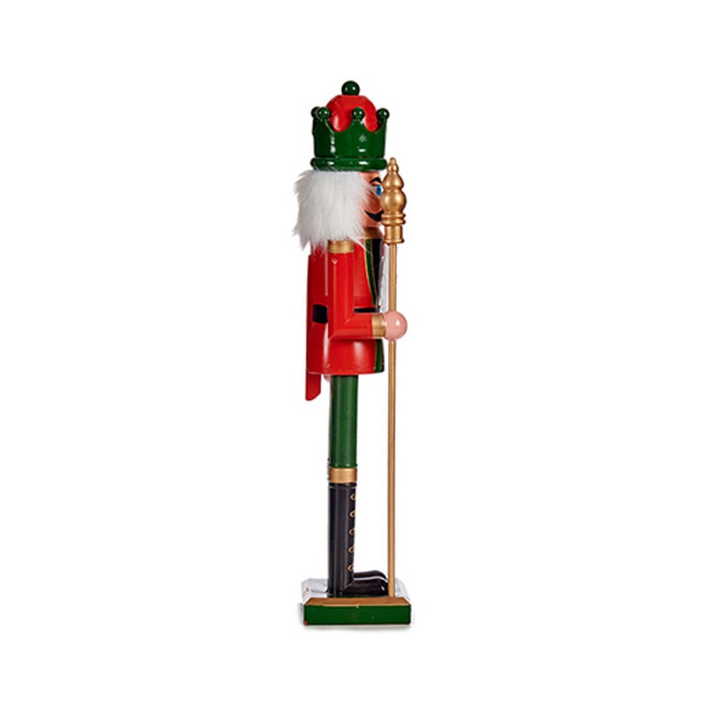 Figura decorativa Cascanueces realizada en plástico de color rojo y verde ideal como complemento de decoración navideño.