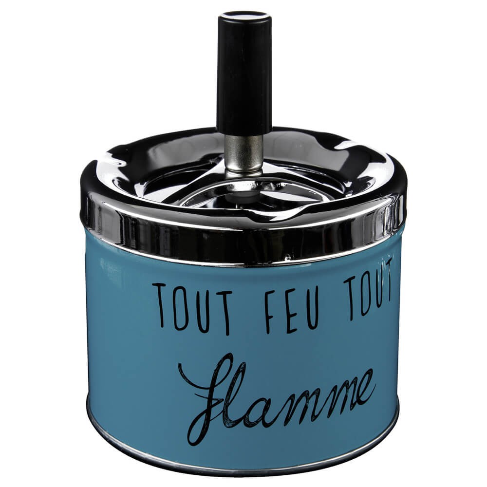 Cenicero fabricado en hierro con sistema de pulsador para que la ceniza y las colillas caigan en el contenedor, 5 colores, azul, negro, blanco, rojo o gris.