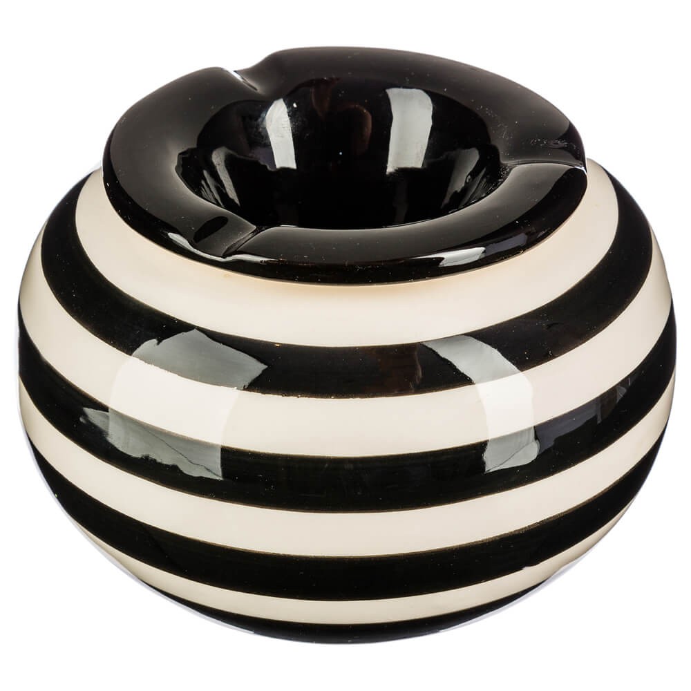 Cenicero de agua fabricado en cerámica resistente con un sencillo diseño de rayas, apto para el hogar y para hostelería. Disponible en cuatro colores, azul, rojo, gris o negro.