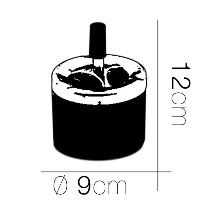 Con un diámetro de 9 cm y una altura de 12 cm, este cenicero de lata es lo suficientemente grande para contener una buena cantidad de ceniza, pero lo suficientemente compacto para no ocupar mucho espacio. Su construcción robusta asegura durabilidad y resistencia, mientras que su acabado en color rojo o negro aporta un toque moderno.