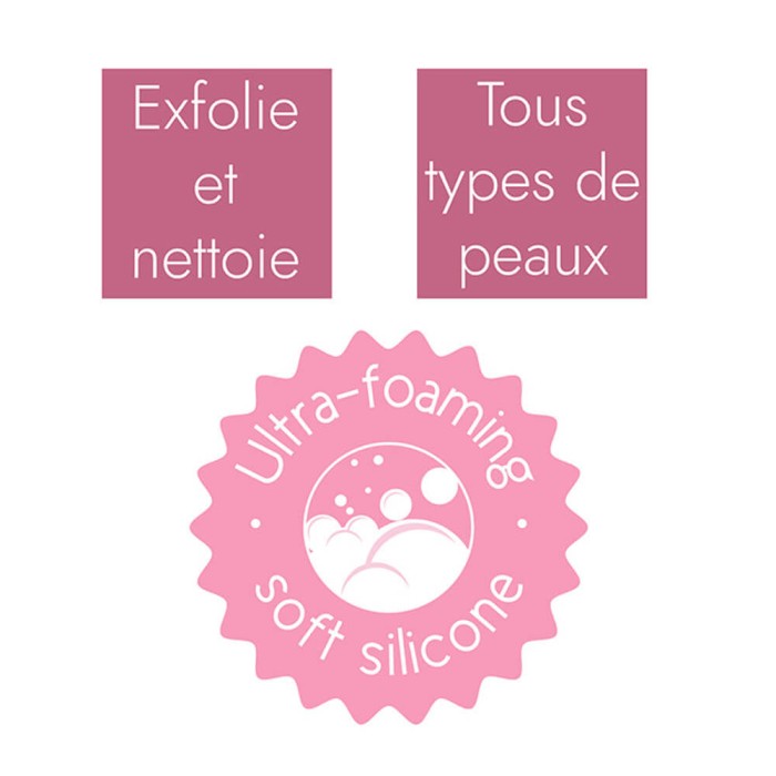 Cepillo facial de silicona para exfoliar y limpiar la piel de forma manual, los filamentos suaves del disco permiten realizar una limpieza eficaz del rostro sin dañarla. Indicado para todo tipo de piel.