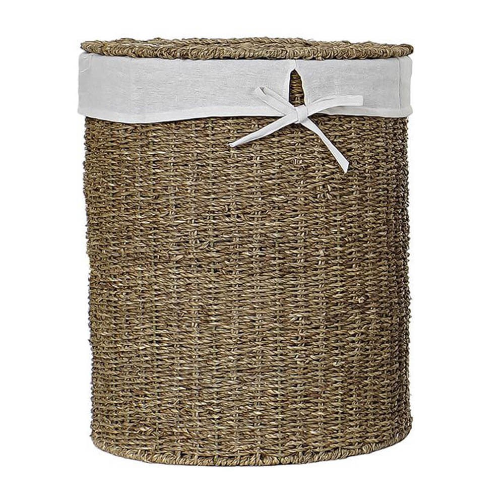 Cesto almacenaje realizado en fibra seagrass trenzado de color natural con forro 100% en algodón blanco.