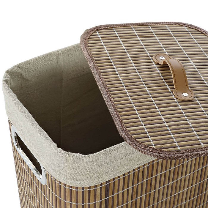Práctico cesto para que puedes contener la ropa usada hasta su lavado con un atractivo diseño en bambú que aportara calidez a la estancia. Las asas permiten un traslado cómodo y la tapa evita que se vea el contenido.