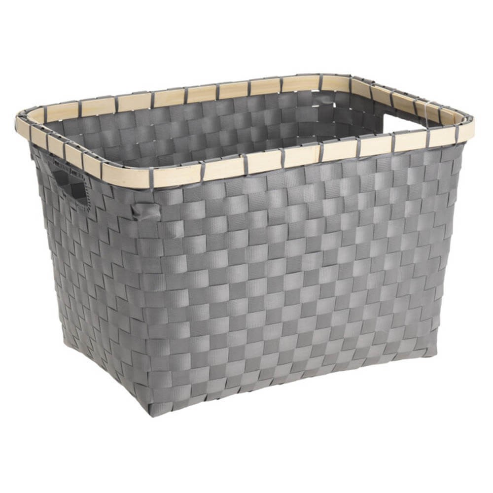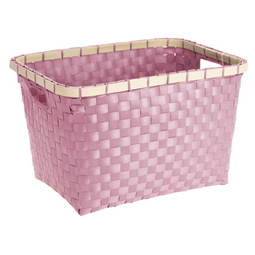Organiza los armarios y estanterías con estilo gracias a esta cesta de almacenaje rectangular, con ella podrás ordenar juguetes, libros, revistas, ropa de bebe, pañales, bufandas, cinturones, etc. Una cesta formada por cintas trenzadas de polipropileno en color rosa o gris rematada con una tira de bambú en la parte superior, muy cómoda de transportar gracias a sus asas.