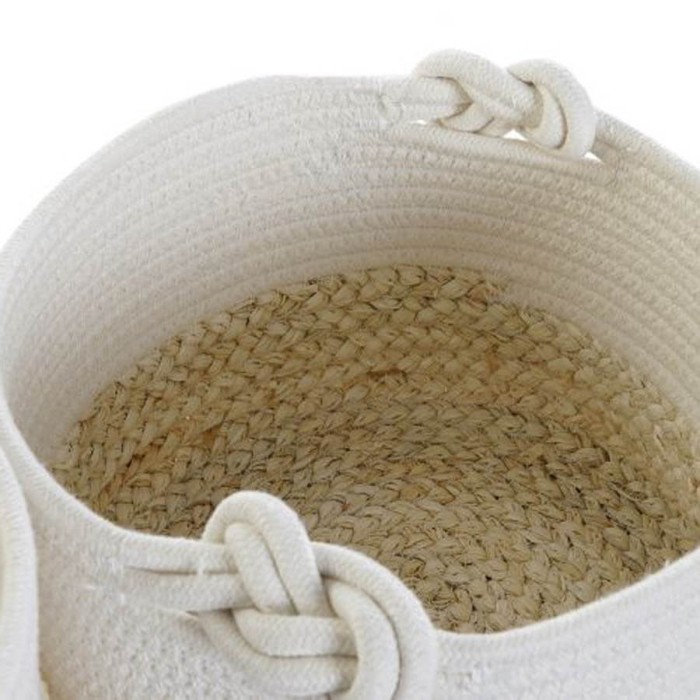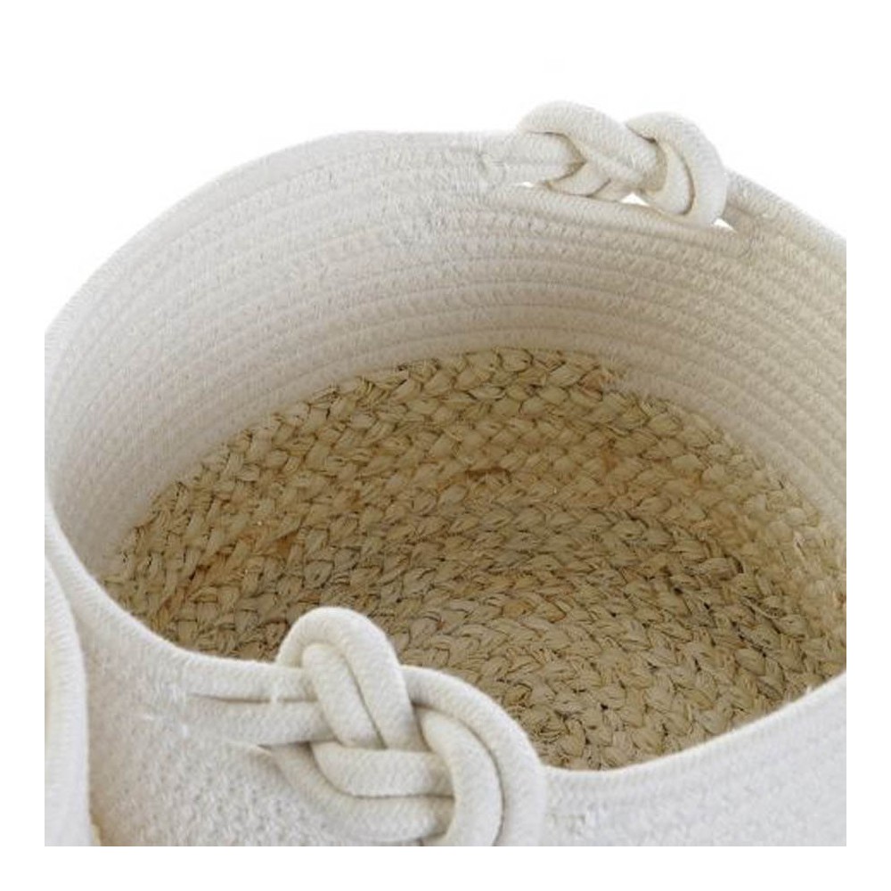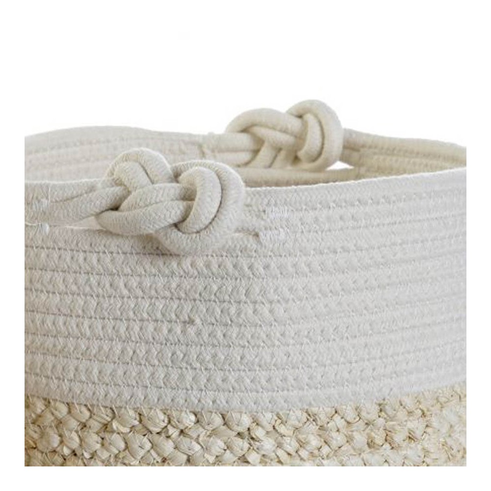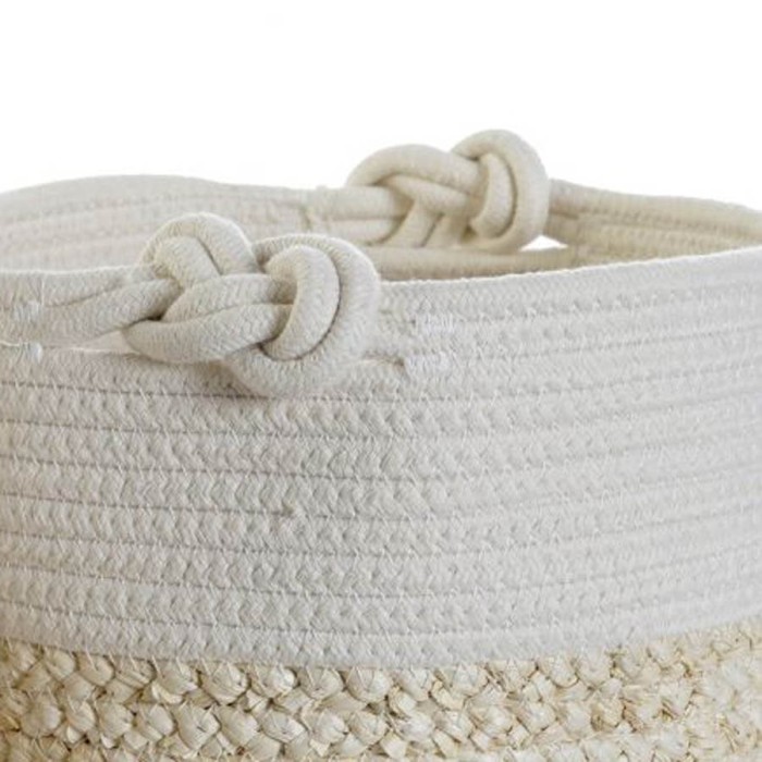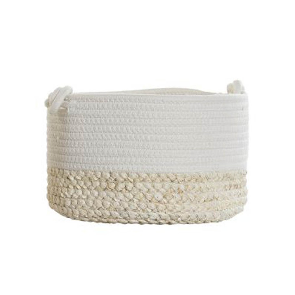 Cesta de almacenaje confeccionada en algodón y fibra de maíz trenzada, combina a la perfección el color natural de la fibra de maíz y el blanco del algodón.