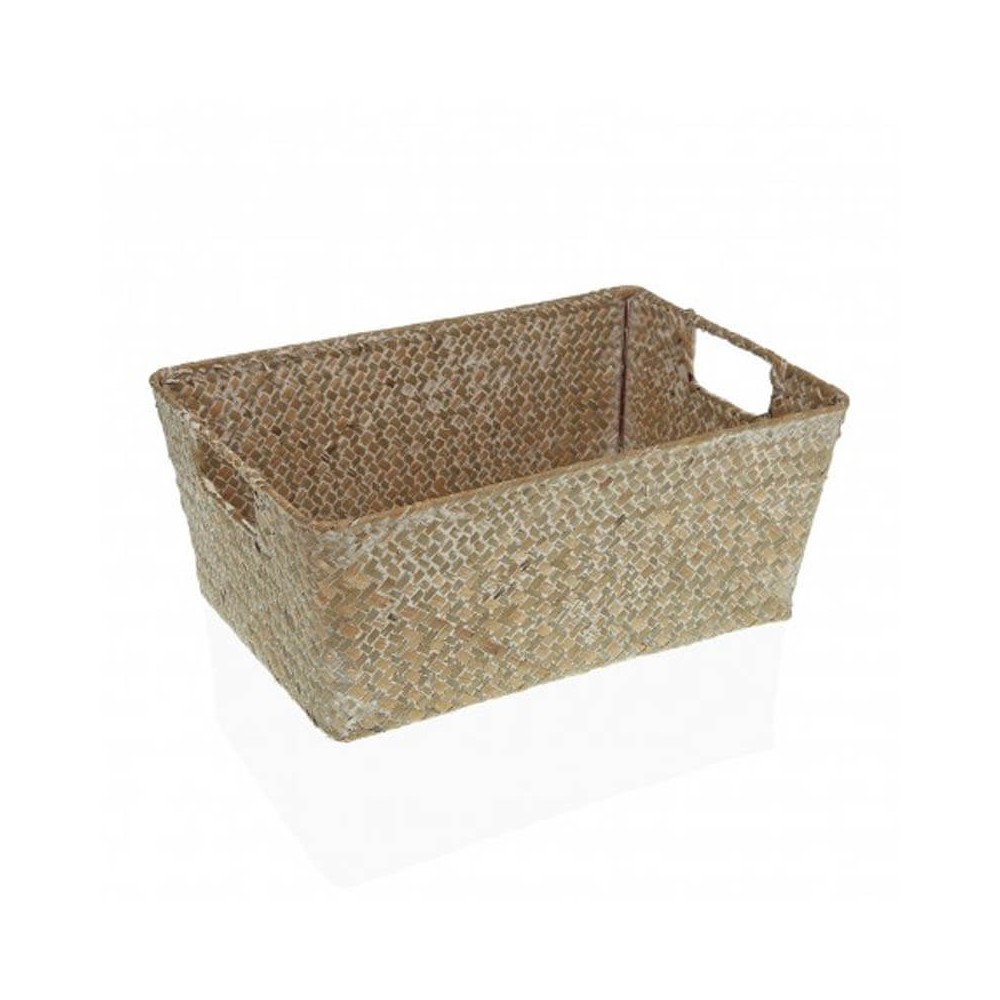 Cesta de almacenaje con asas en formato rectangular realizada en fibra natural trenzada, muy práctica para organizar armarios, estanterías y cajones.