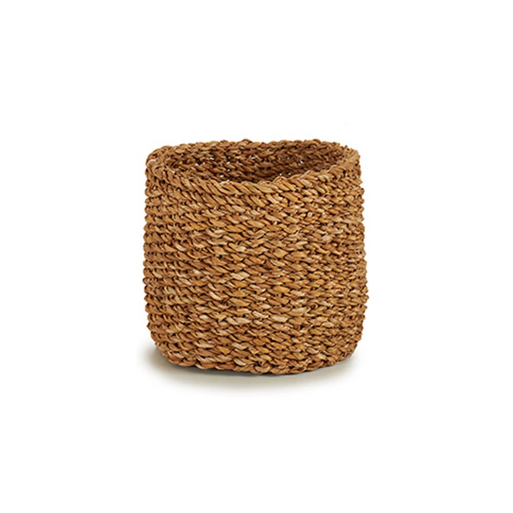 Cesta de esparto pequeña con un bonito diseño trenzado de estilo rústico en color natural.