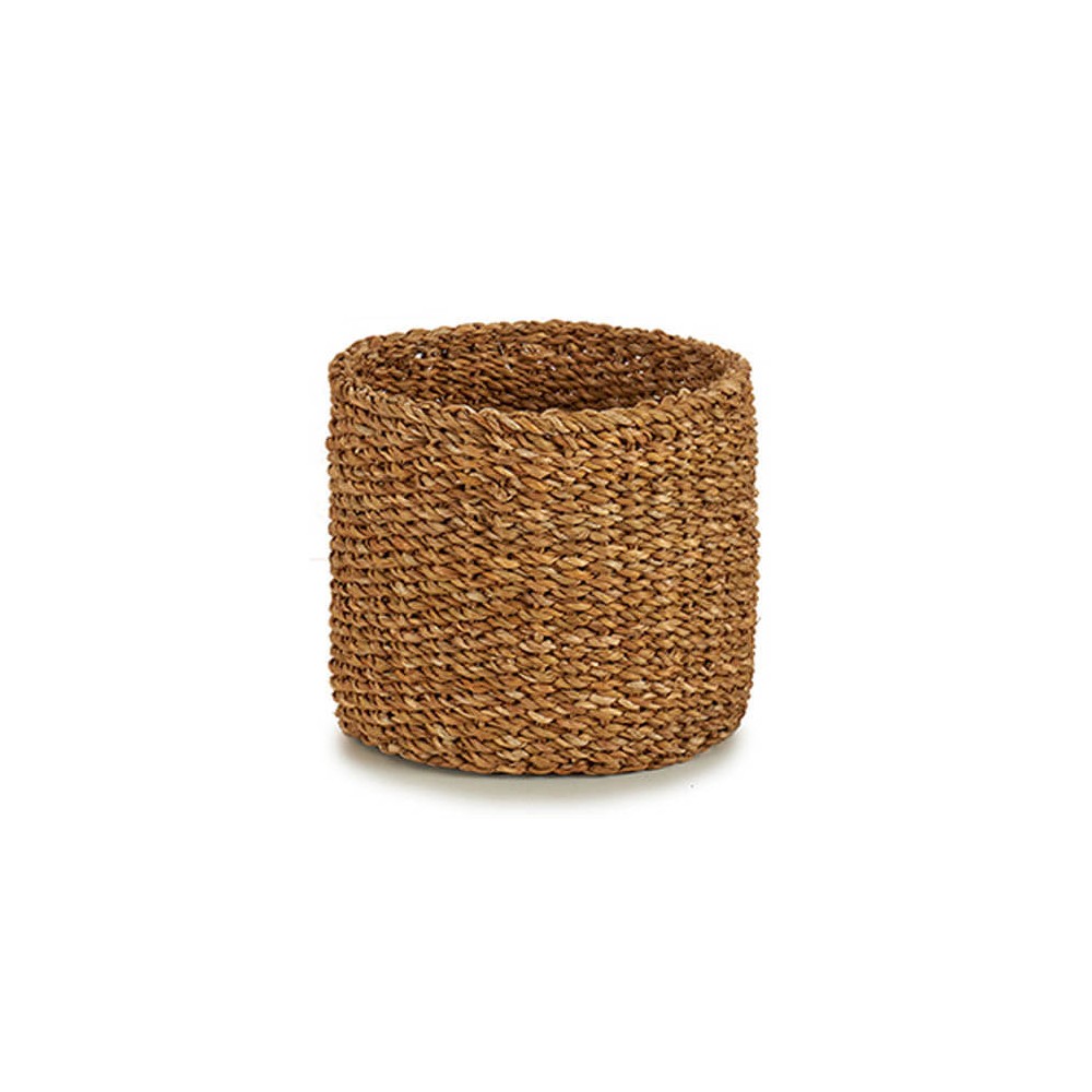 Cesta de esparto pequeña con un bonito diseño trenzado de estilo rústico en color natural.