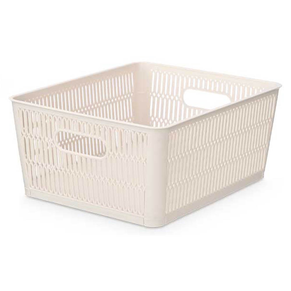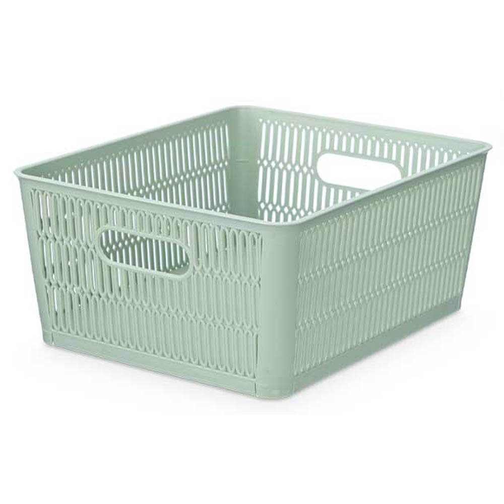 Organiza tu hogar de manera eficiente con la caja de almacenaje de plástico resistente. Disponible en color beige, verde o gris, esta cesta es ideal para que mantengas el orden en los muebles de la cocina, la zona de lavado, el baño y cualquier otro espacio que necesite una solución de almacenamiento práctica y moderna.