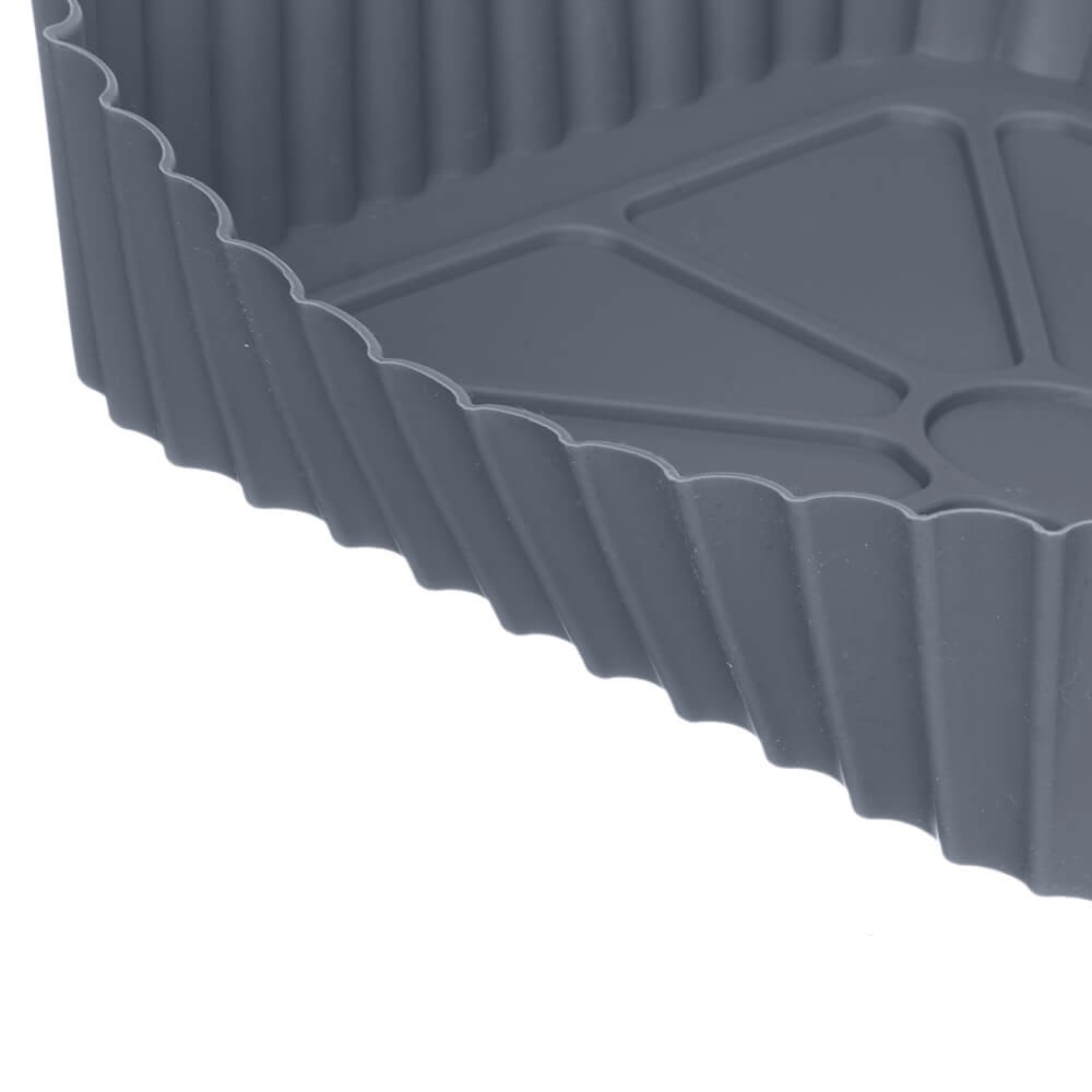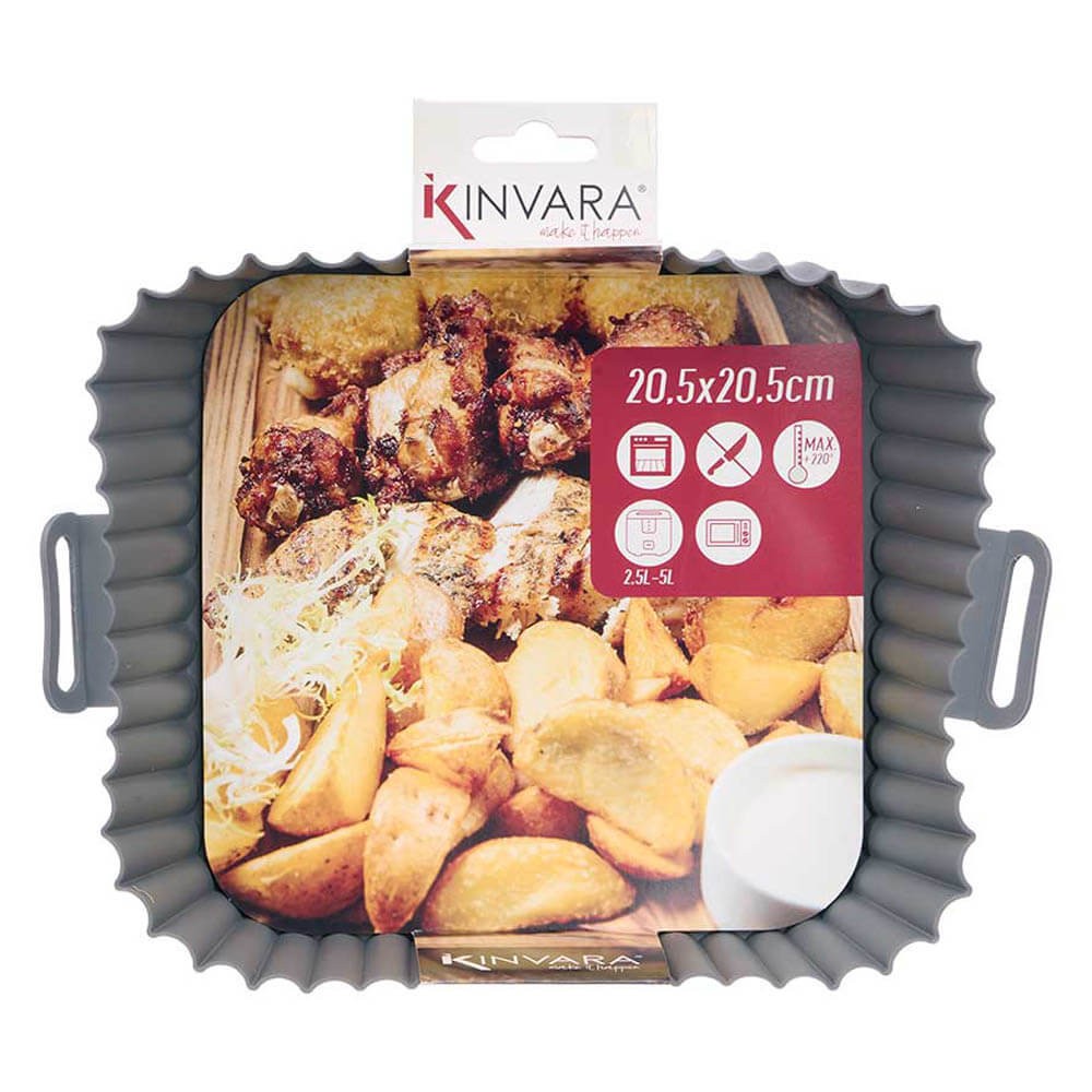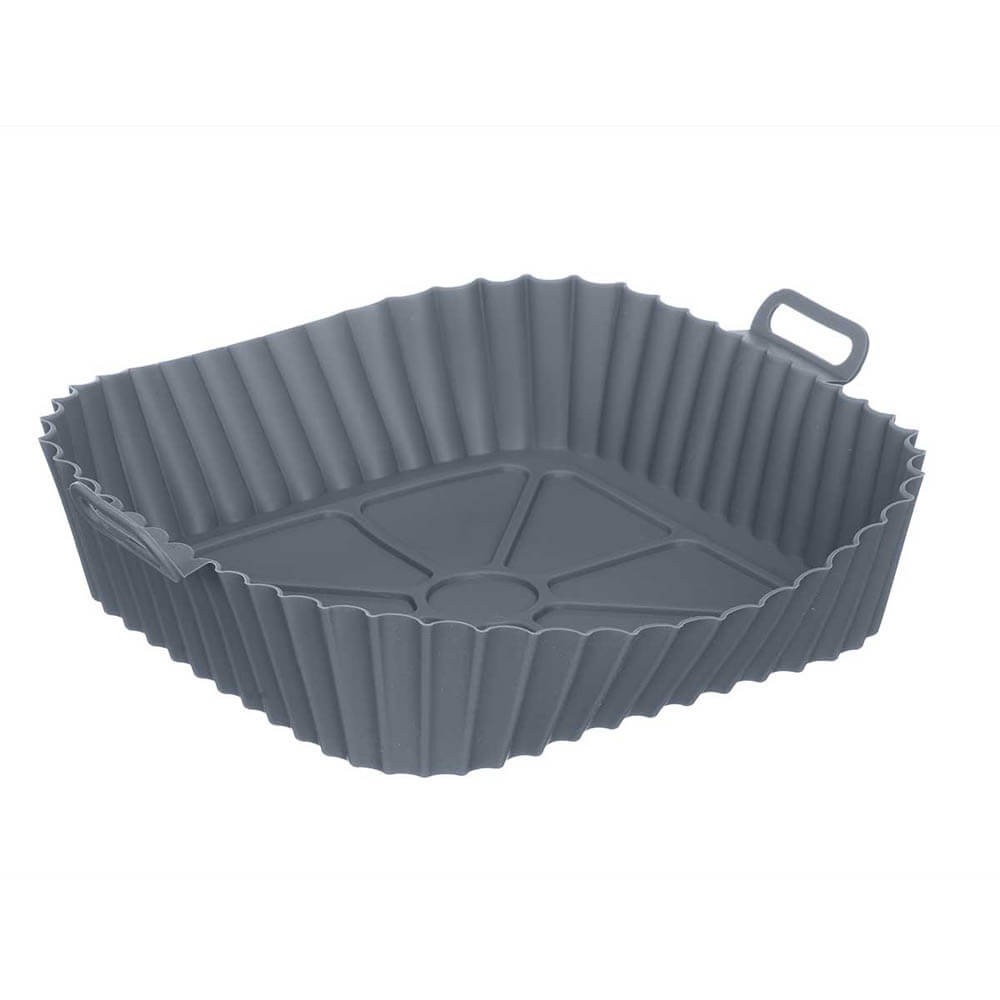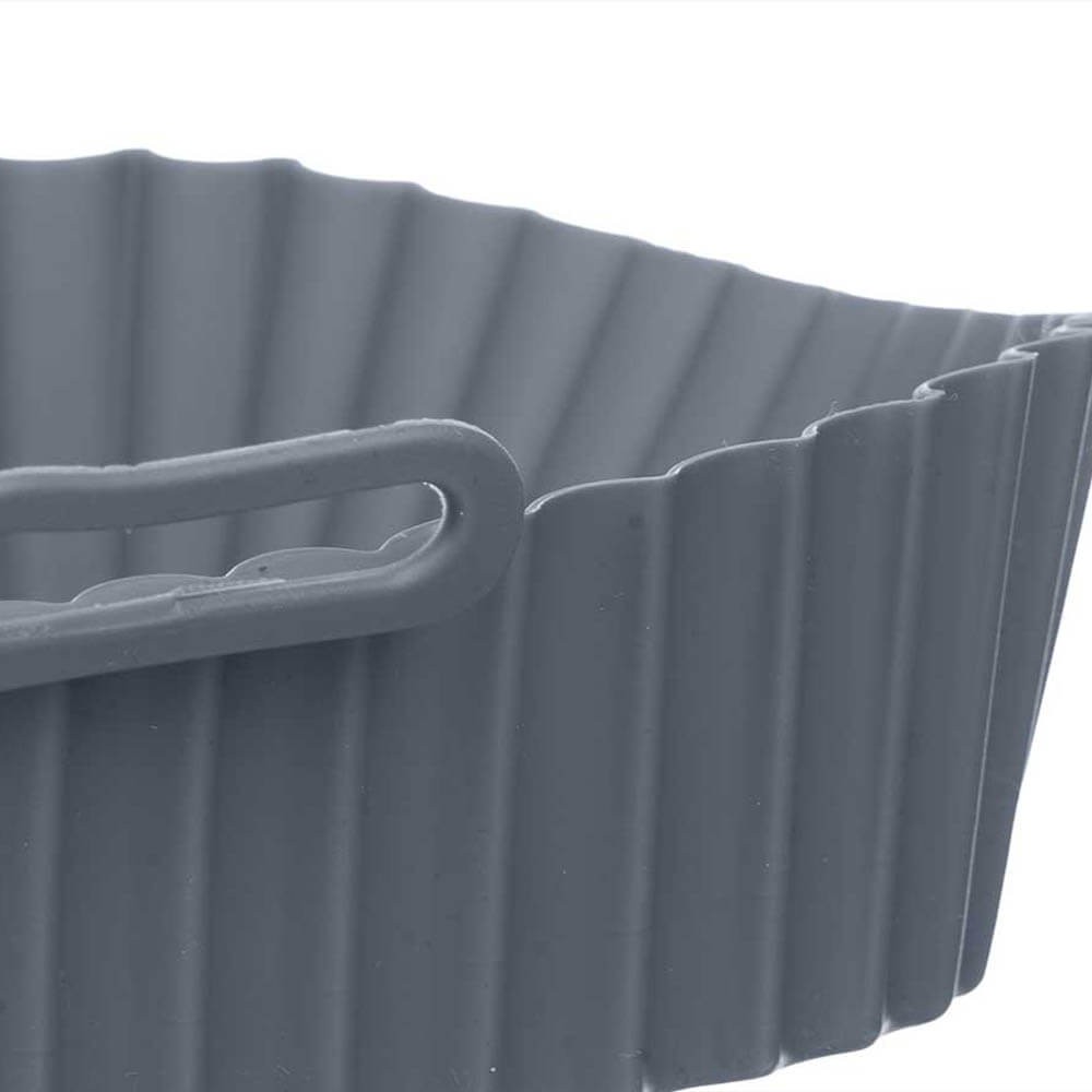 Molde de silicona para freidora de aire de 20,5 cm x 20,5 cm, apto para freidoras de 2,5 a 5 litros. Resistente hasta 220ºC, también se puede usar en horno y microondas. Con asas para un agarre seguro.
