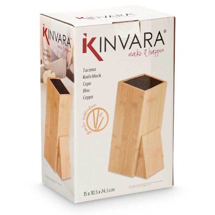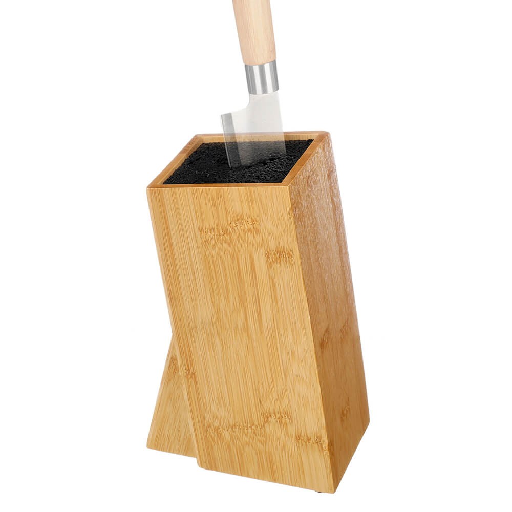 Taco para cuchillos realizado en bambú natural con interior de fibras de polipropileno, ideal para mantener los cuchillos organizados y al alcance la mano, Resistente, ecológico y fácil de limpiar.