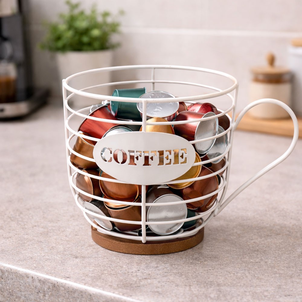 CESTA TAZA BLANCA PORTACPSULAS CAFE 19X13X13.5 CM