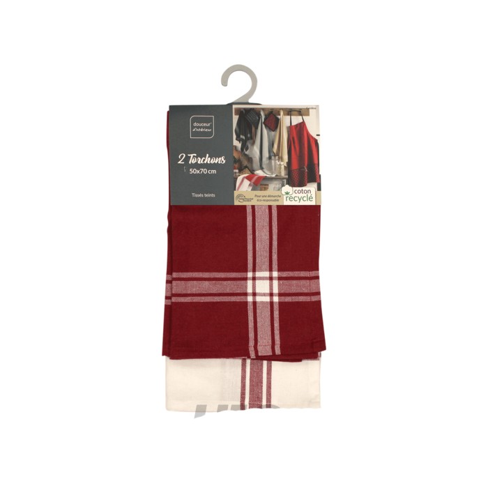 SET 2 PAÑOS ROJO 50X70CM BLANCO ALGODON
