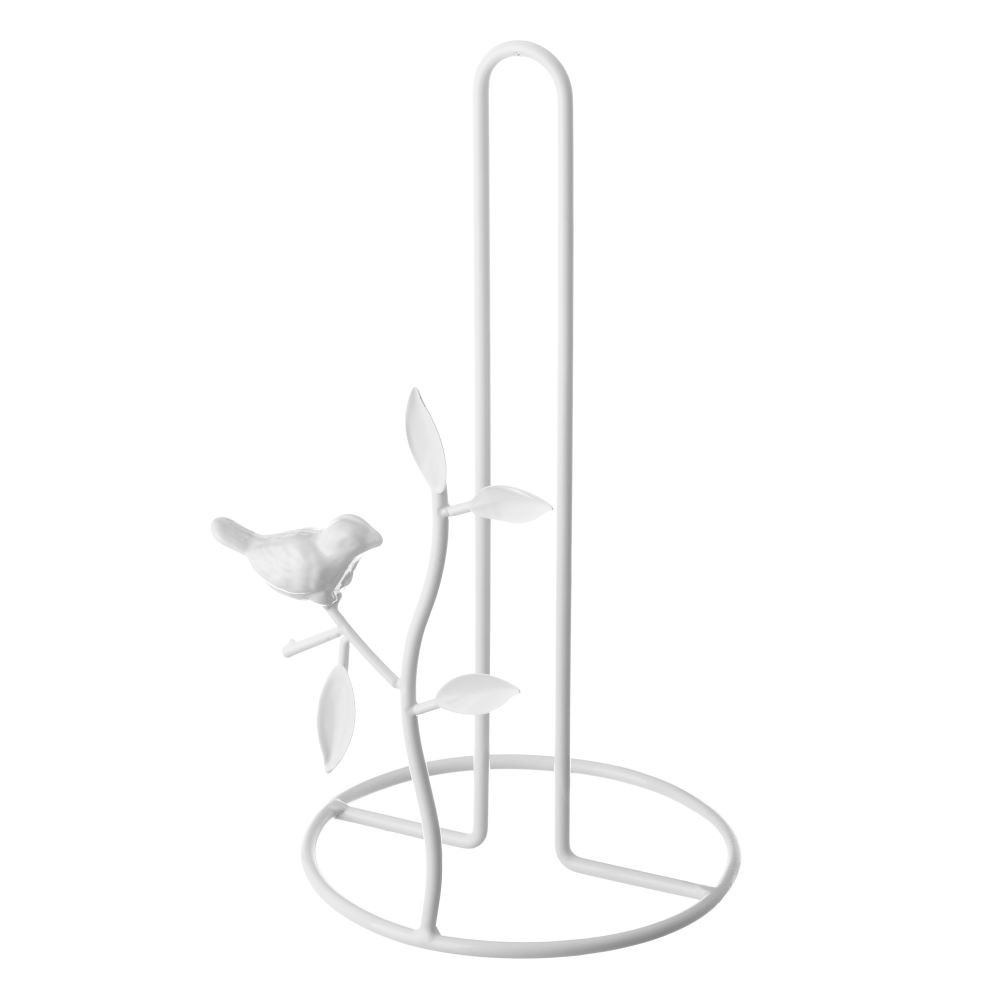 Portarrollos de cocina en metal blanco decorado con un pájaro. No apto para el lavavajillas.