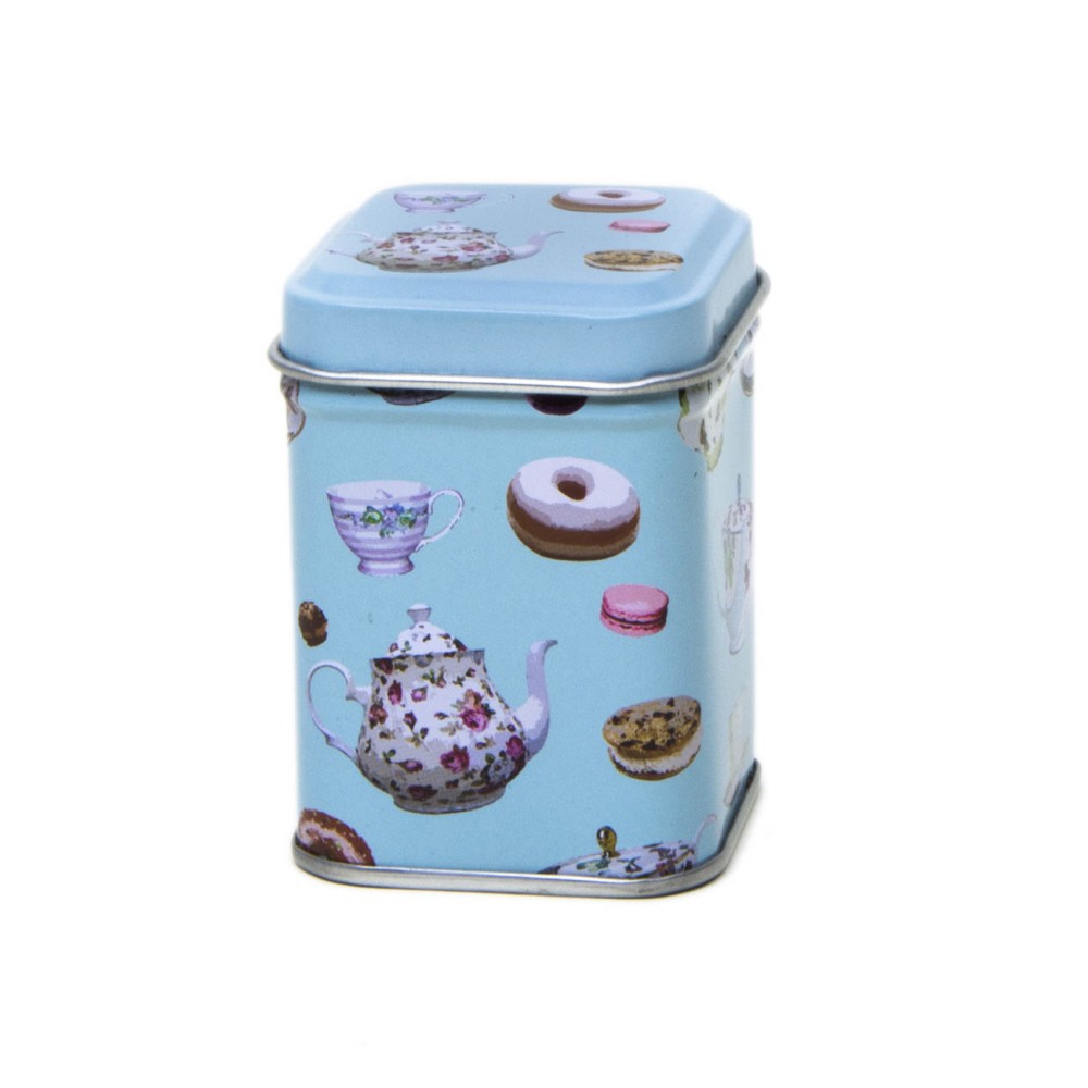 Bote metálico de estilo ingles en tonos azules, quedará perfecto en tu alacena y te ayudara a mantener tu cocina ordenada. Puedes utilizar el bote para guardar infusiones, tés, café, especias. etc.