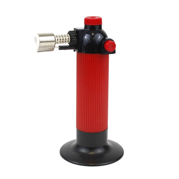 El soplete esta elaborado en plástico rojo de alta calidad, tiene bloqueo de seguridad y llama ajustable