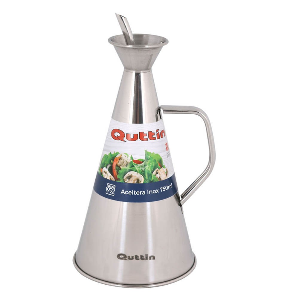 Aceitera antigoteo fabricada en acero inoxidable con capacidad para 750ml.
