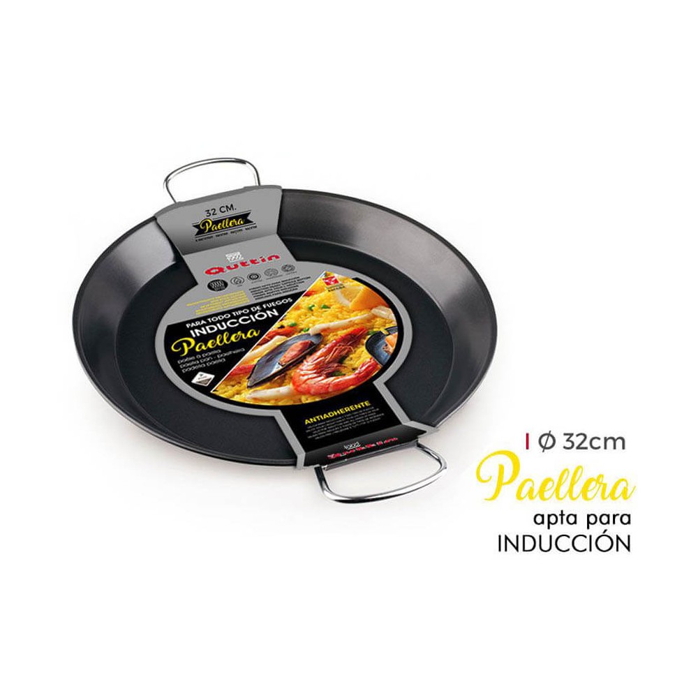Paellera antiadherente apta para todos los fuegos, su base lisa se puede usar en placa, parrilla, inducción, etc. Con un diámetro de 32 cm, esta paellera es perfecta para 2-4 personas. Esta fabricada en acero de alta resistencia, conduce el calor de forma rápida y uniforme.