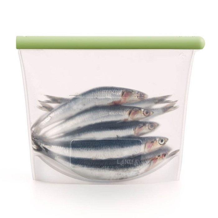 Bolsa de silicona reutilizable 1000 ml para almacenar y conservar herméticamente los alimentos. Sustituye los plásticos de un solo uso.