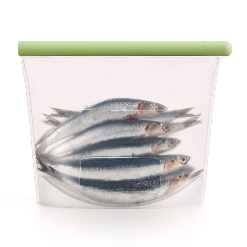 La bolsa de silicona es 100% hermética. Perfecta para conservar o almacenar 1 o 2 raciones, verduras, guarniciones o ingredientes de tamaño medio.