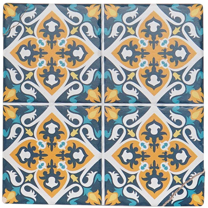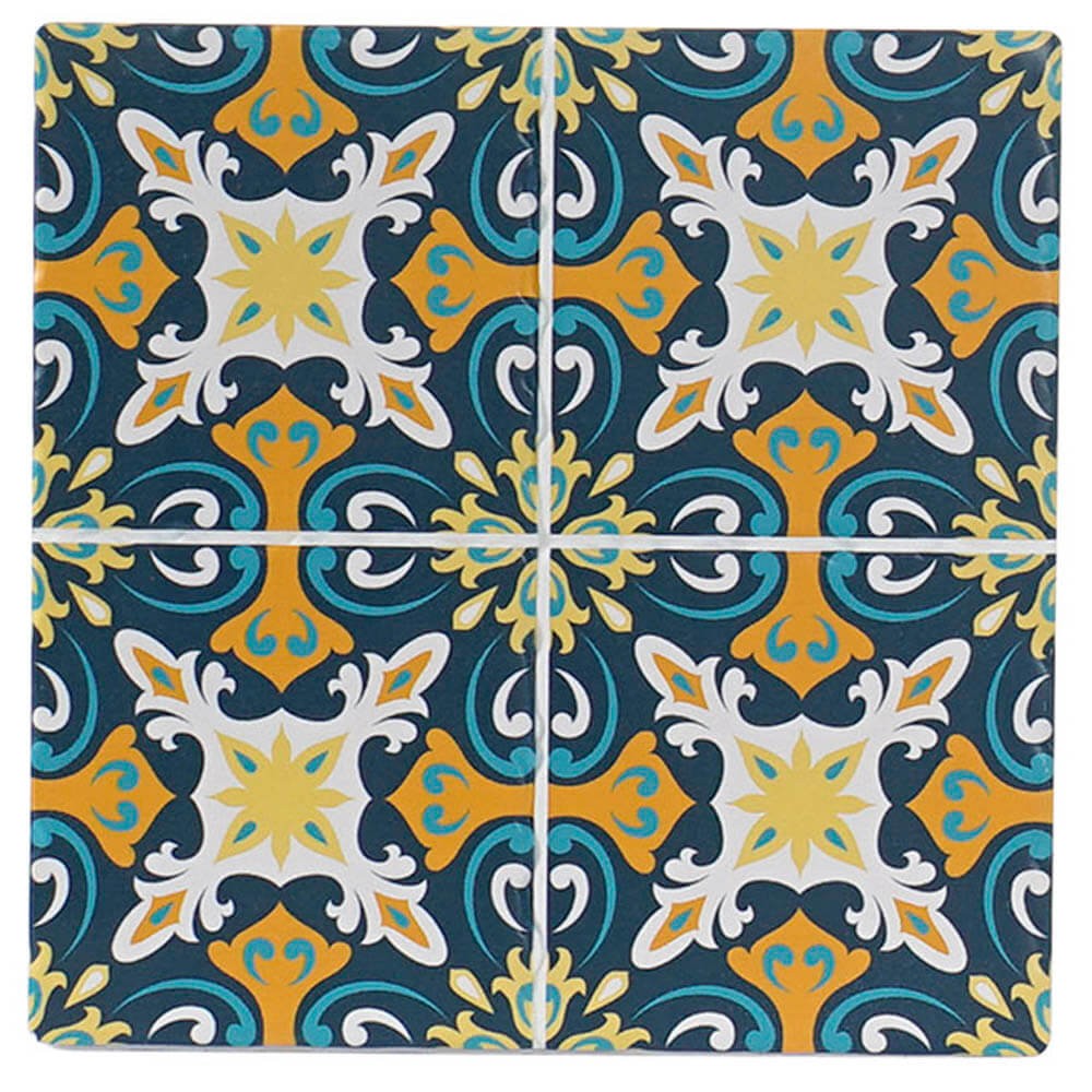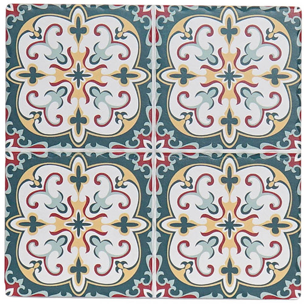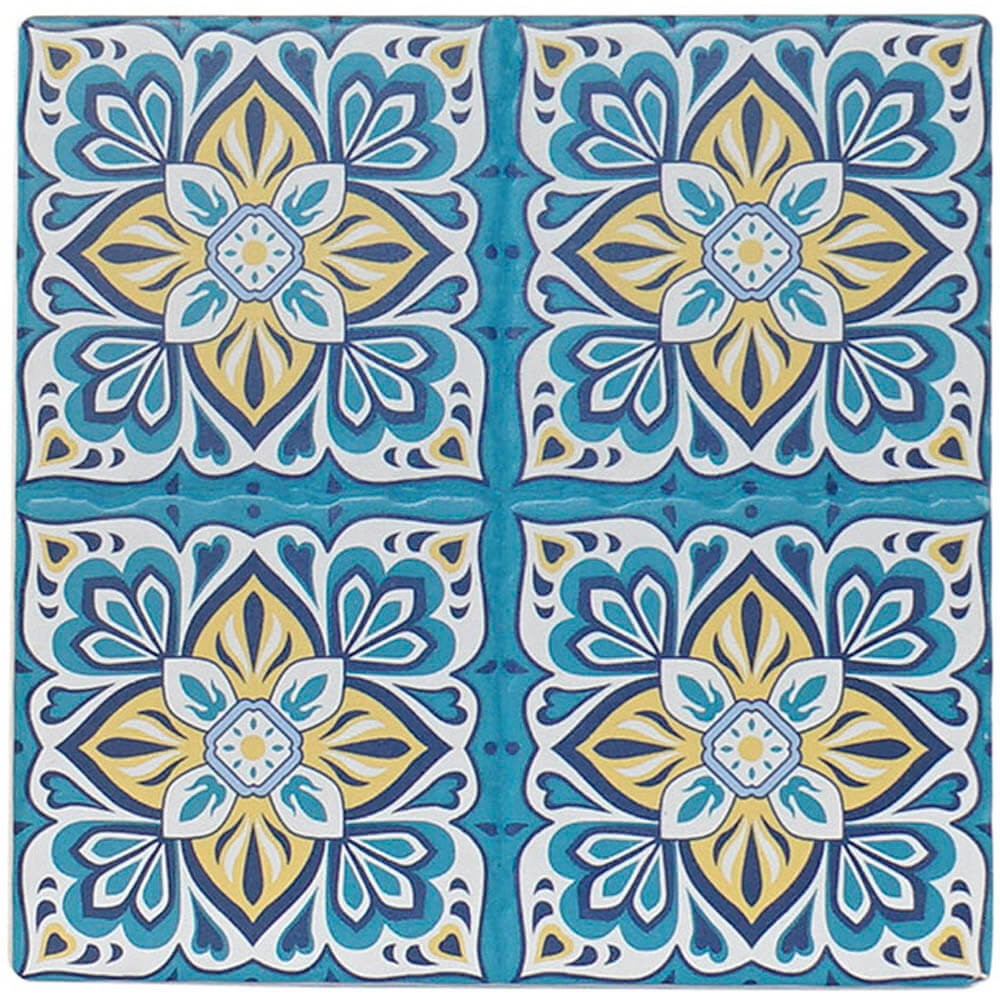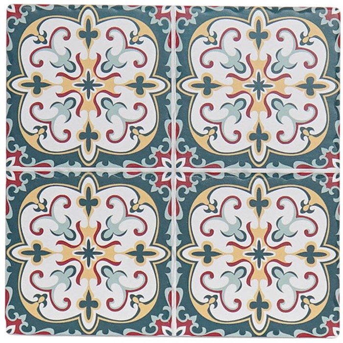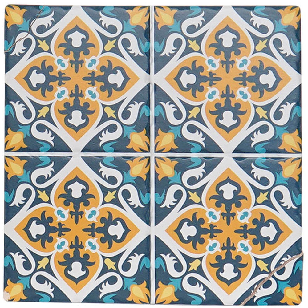 Salvamantel cuadrado de estilo clásico con base de corcho realizado en cerámica impresa con un original diseño que recuerda a los azulejos hidráulicos, muy practico para apoyar las cacerolas, sartenes, ollas y demás menaje caliente.