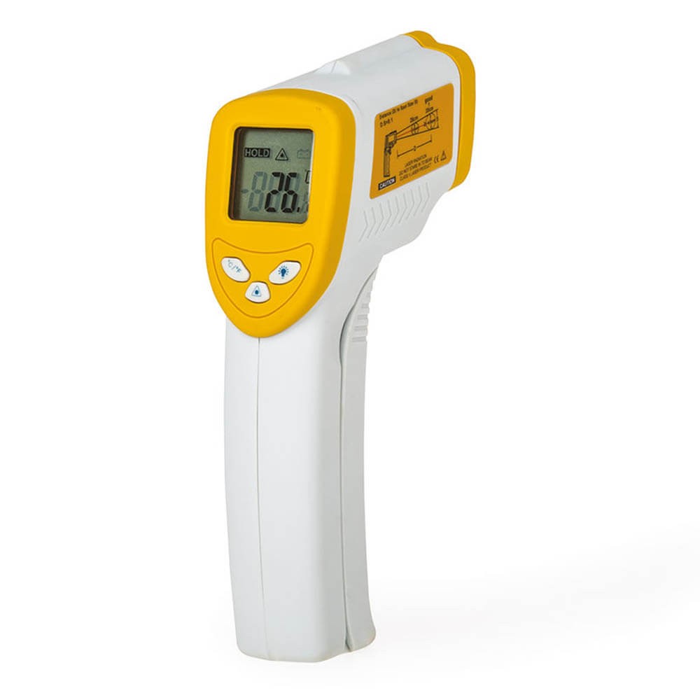 Termómetro infrarrojos que permite medir la temperatura de superficies calientes sin necesidad de entrar en contacto. Simplemente apunte con el dispositivo y presione el botón para leer la temperatura.