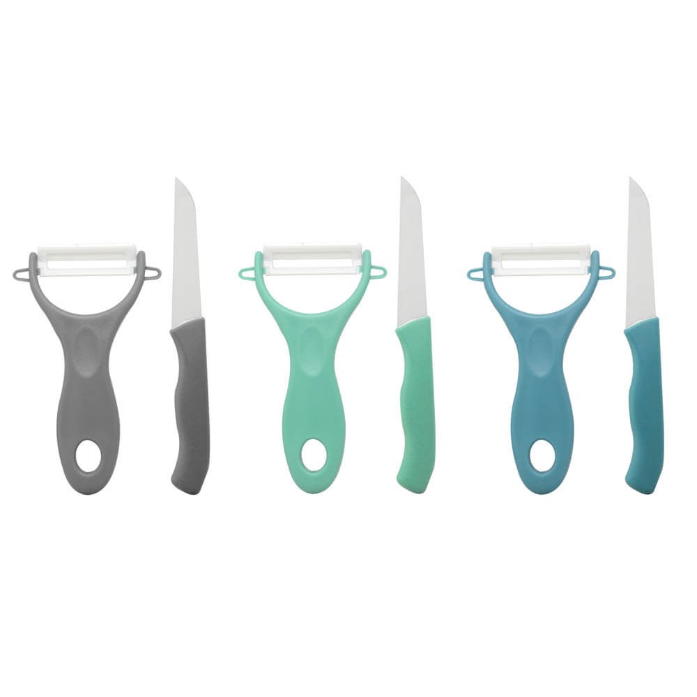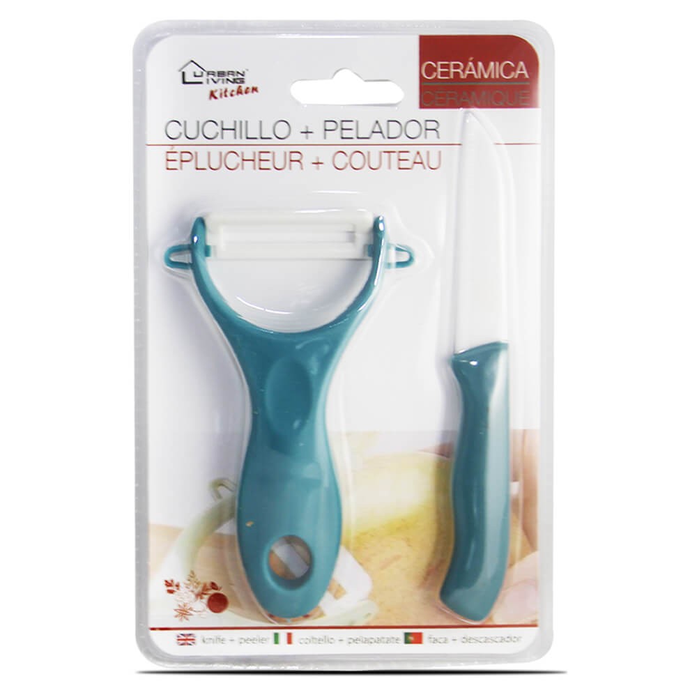 Conjunto de cuchillo de cerámica y pelador pendular con cuchilla de cerámica. 3 colores según disponibilidad.